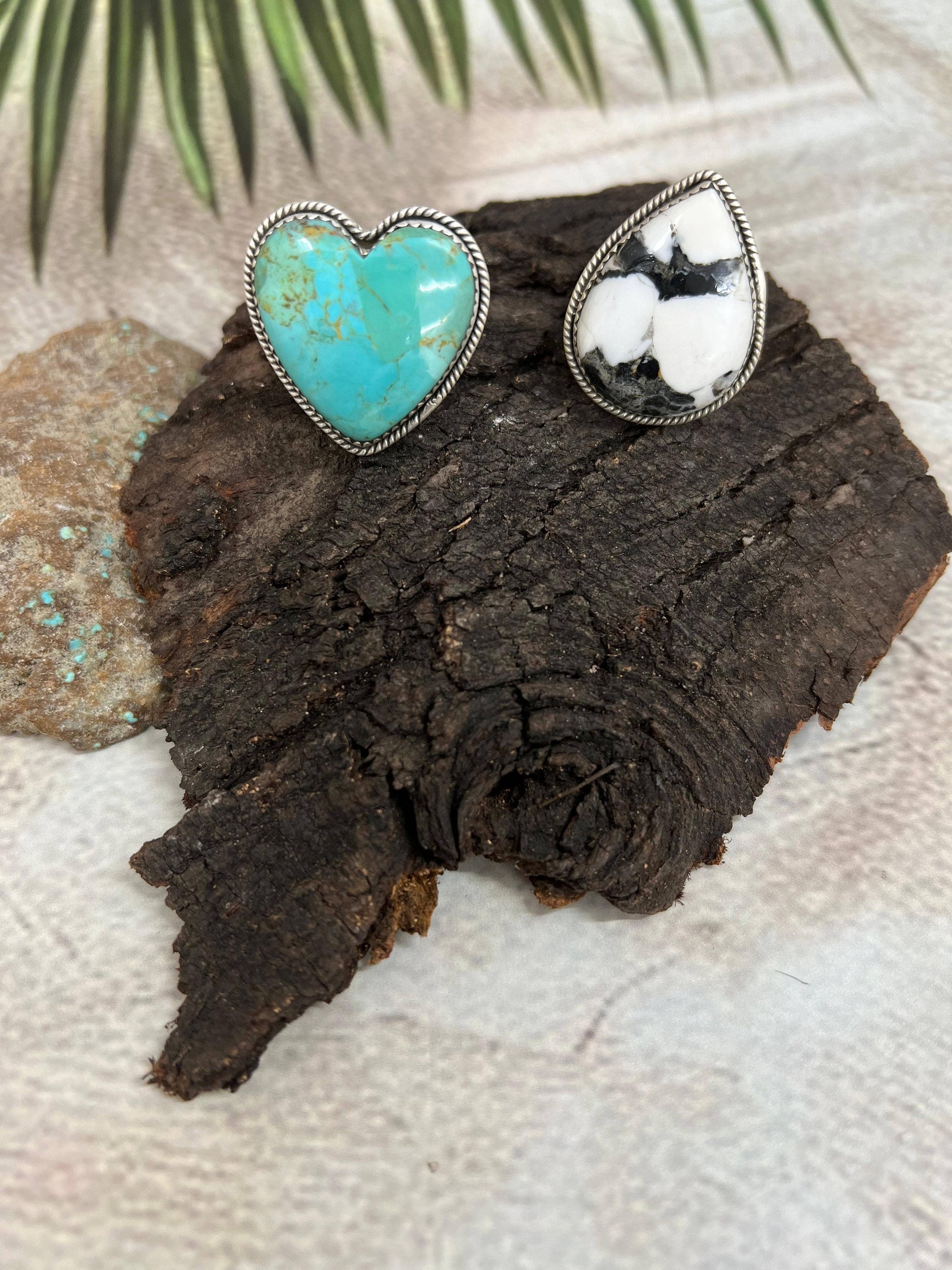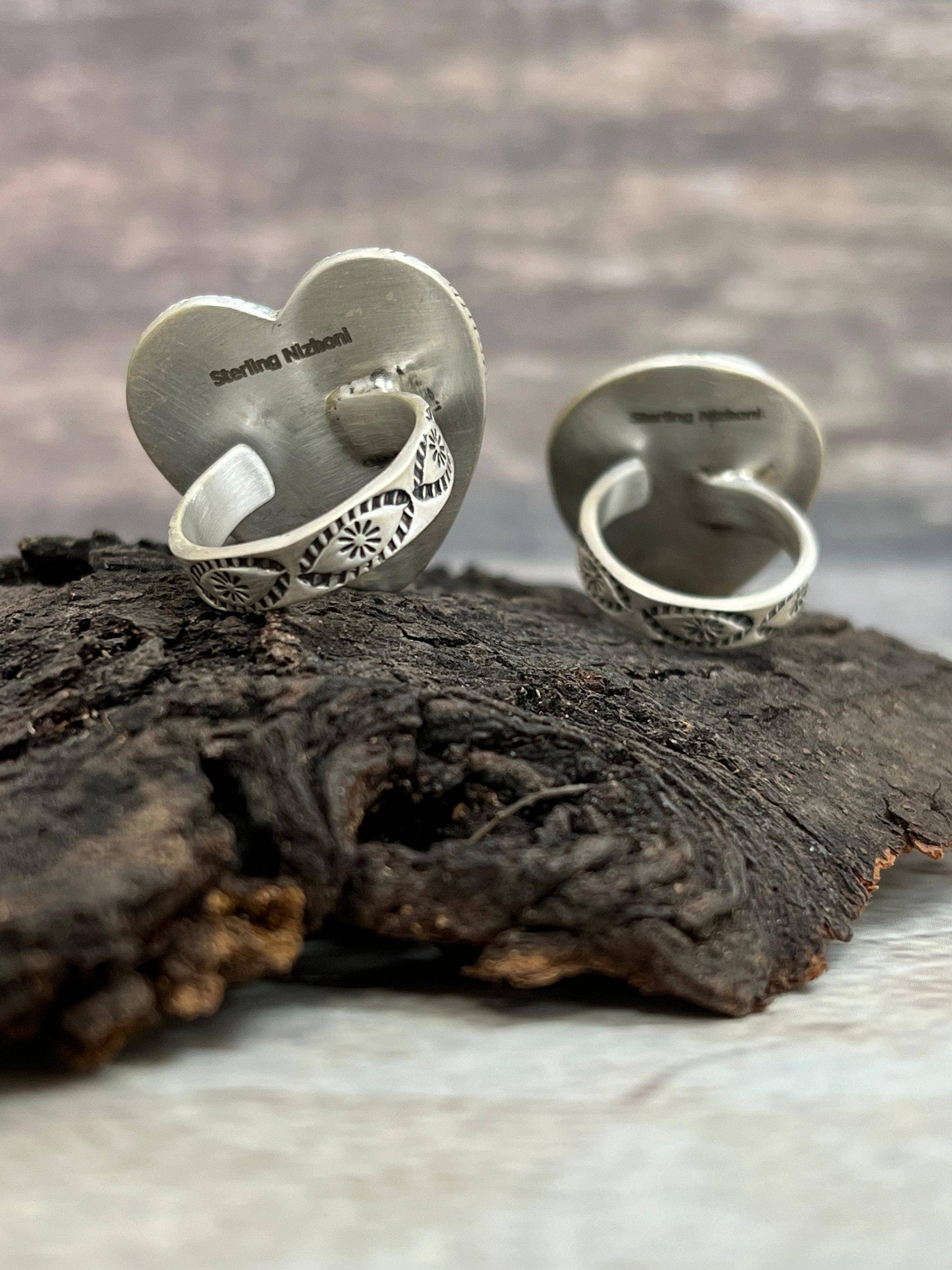 Introducing our latest masterpiece! This stunning Sterling Silver White Buffalo, Kingman Turquoise adjustable rings is a true showstopper. With dimensions of 1 1/8" in length and 1" in width, it’s designed to make a bold statement.