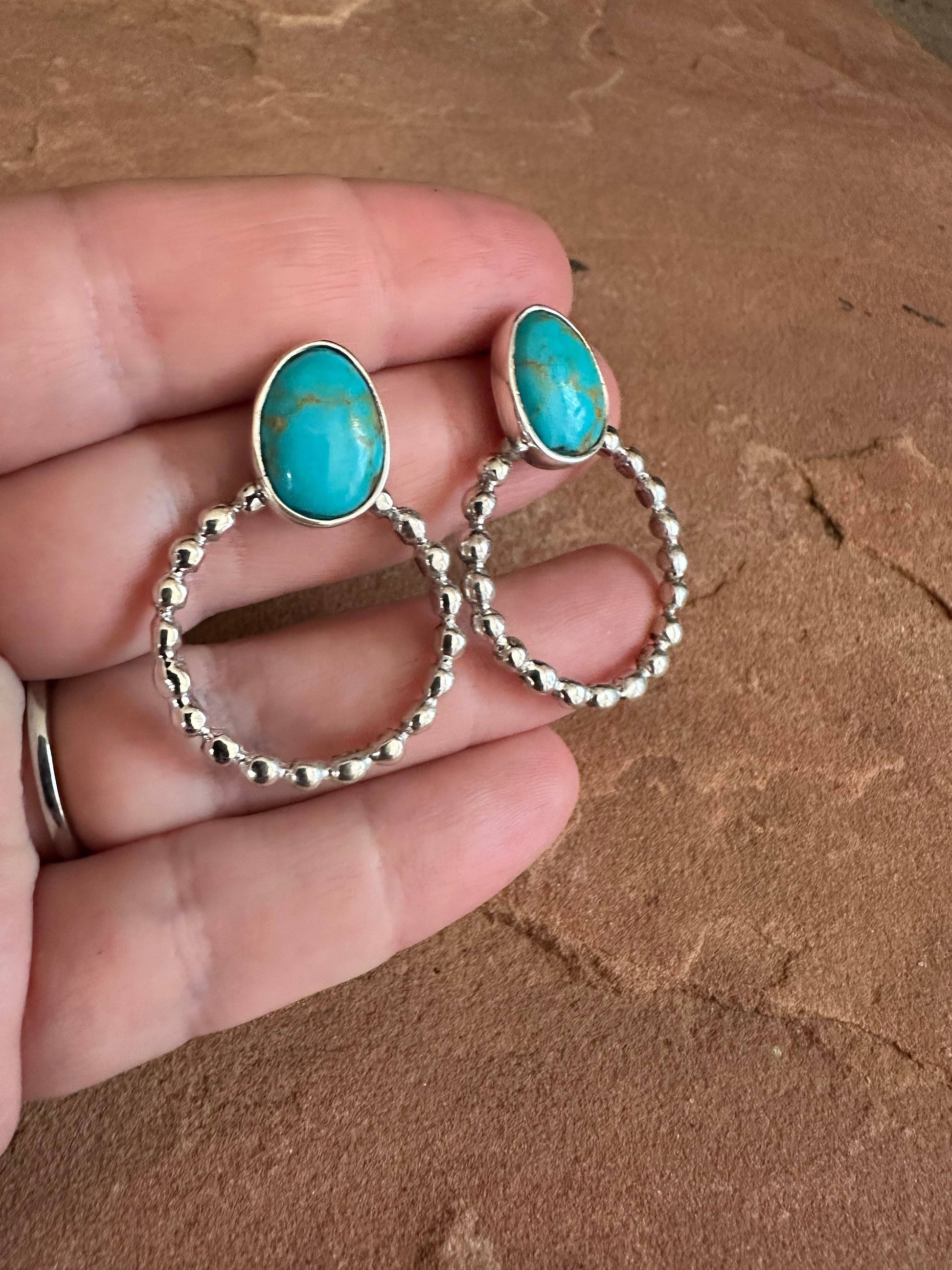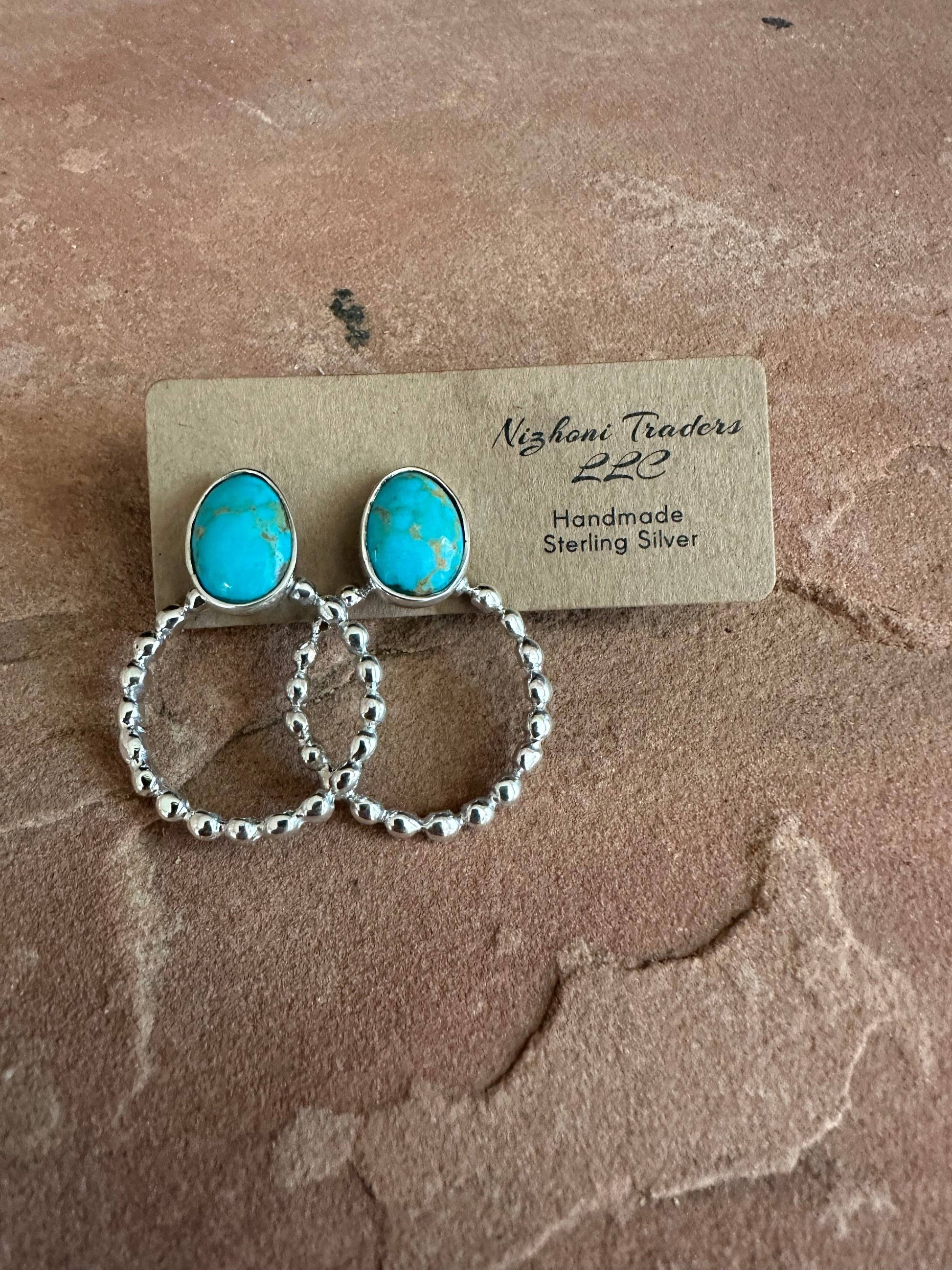 Handmade Turquoise & Sterling Silver Hoop Earrings LESS MATRIX