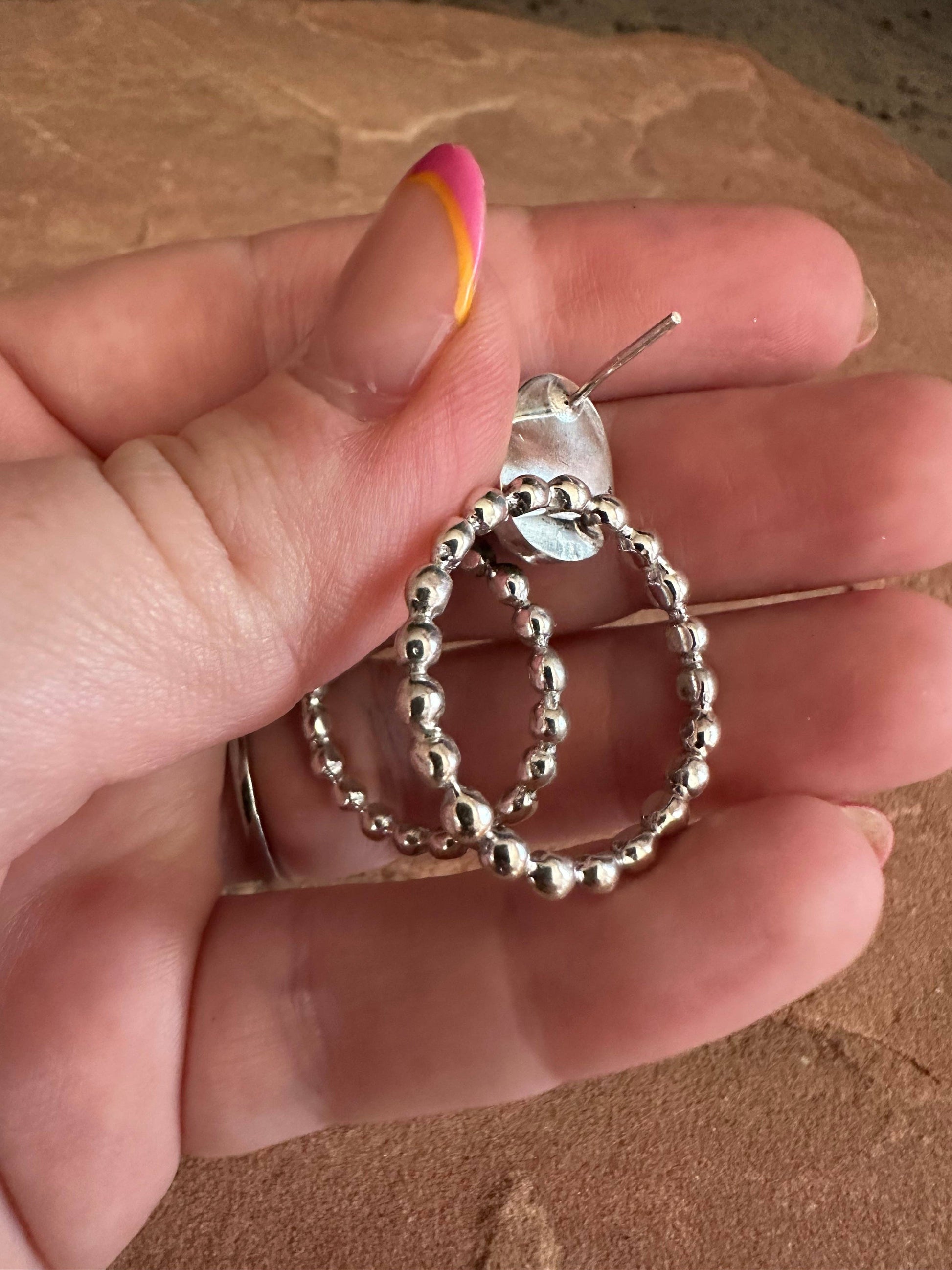 Beautiful Handmade Turquoise & Sterling Silver Hoop Earrings. These measure 1.5 inch long and 1 inc wide. Great addition for any collection. Absolutely beautiful set of earrings!