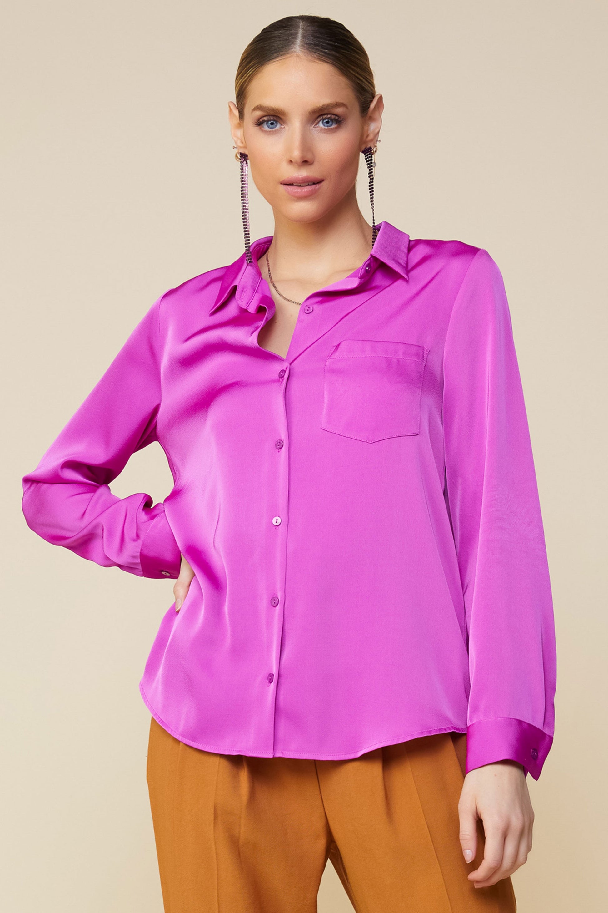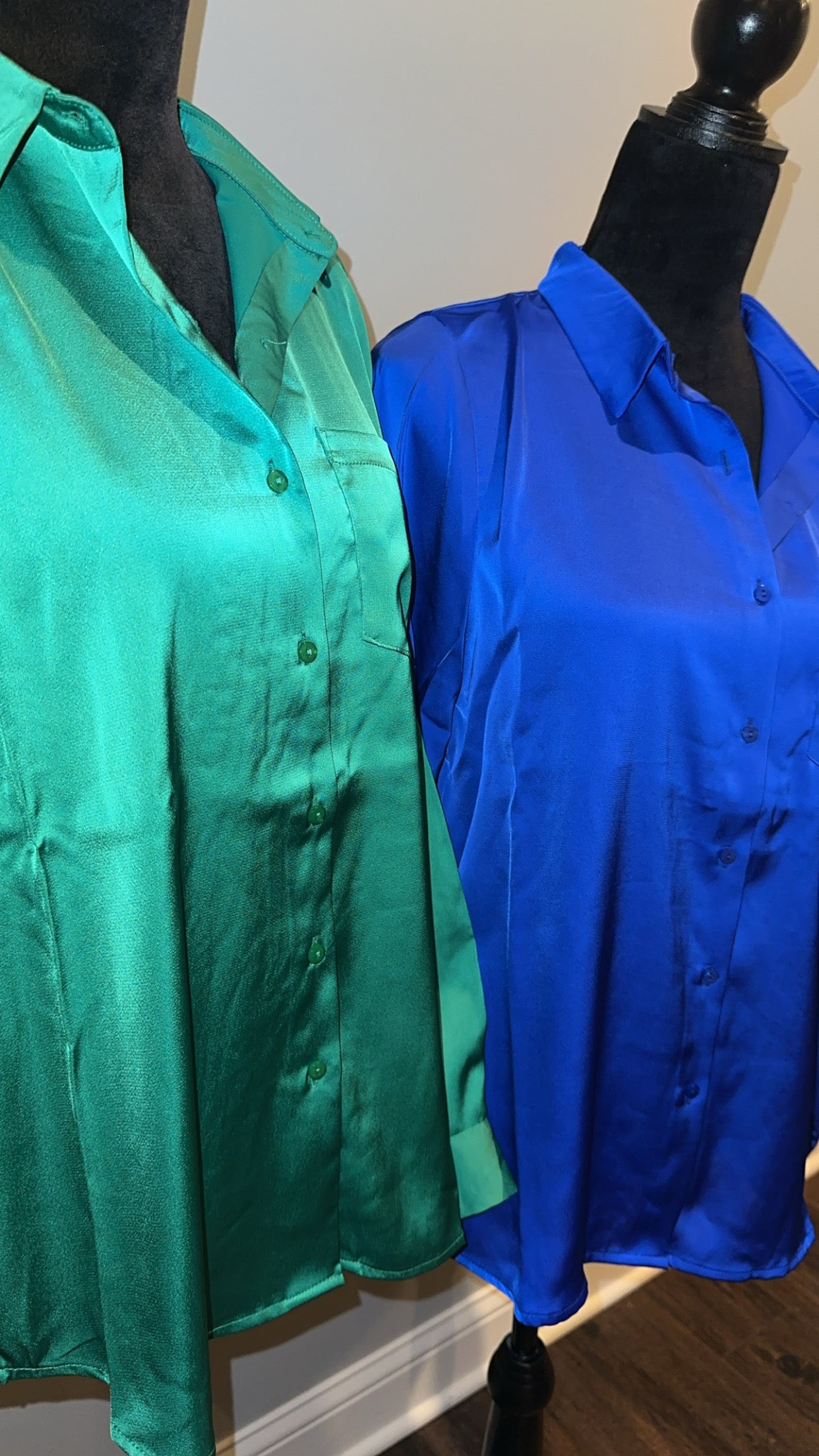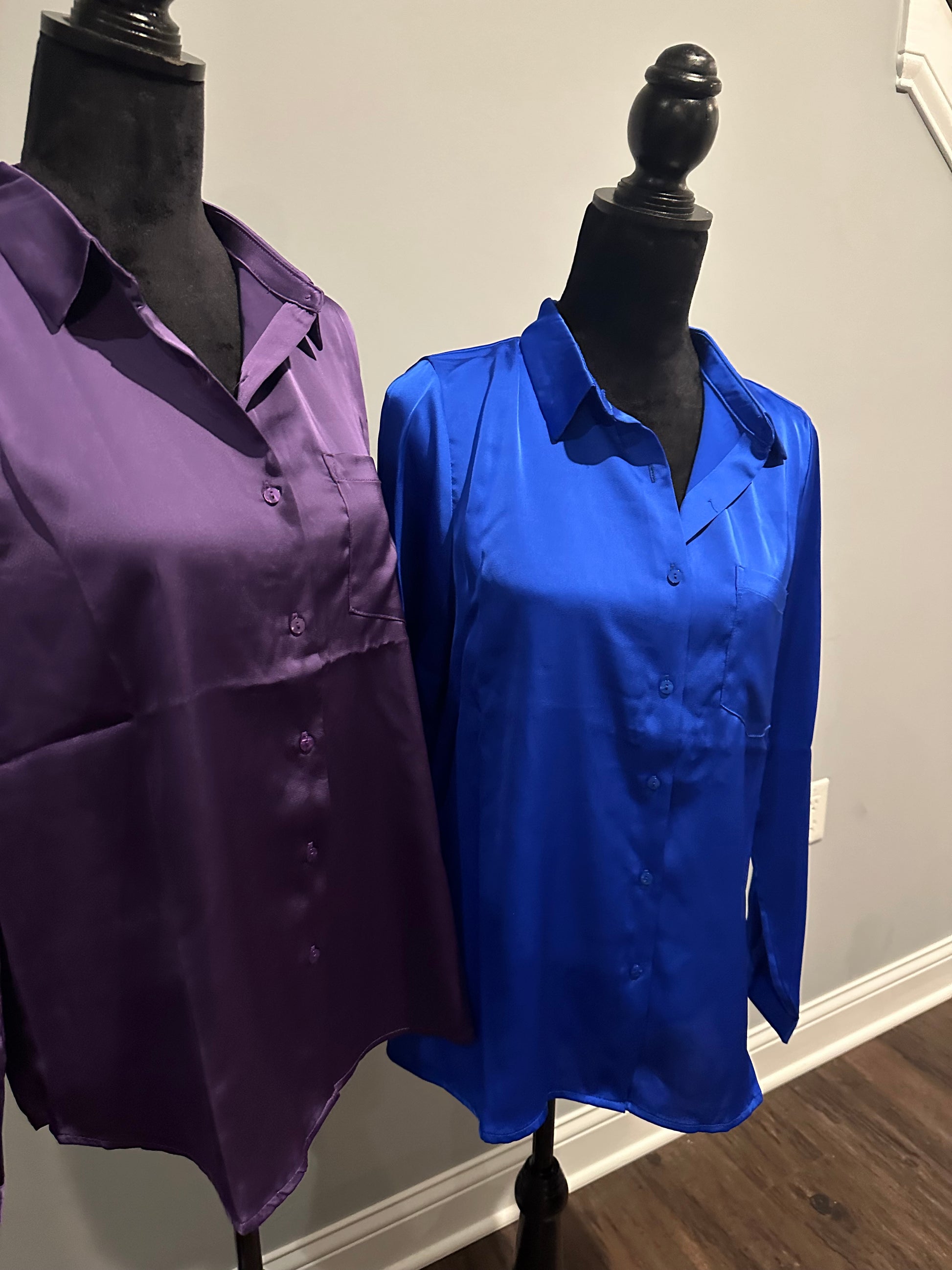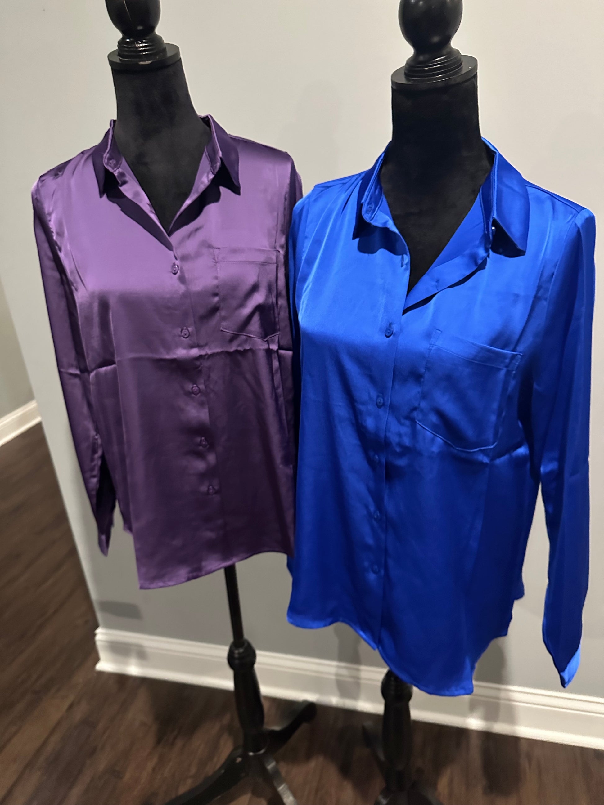 LONG SLEEVE SATIN BUTTON DOWN SHIRT WITH POCKET *6colors