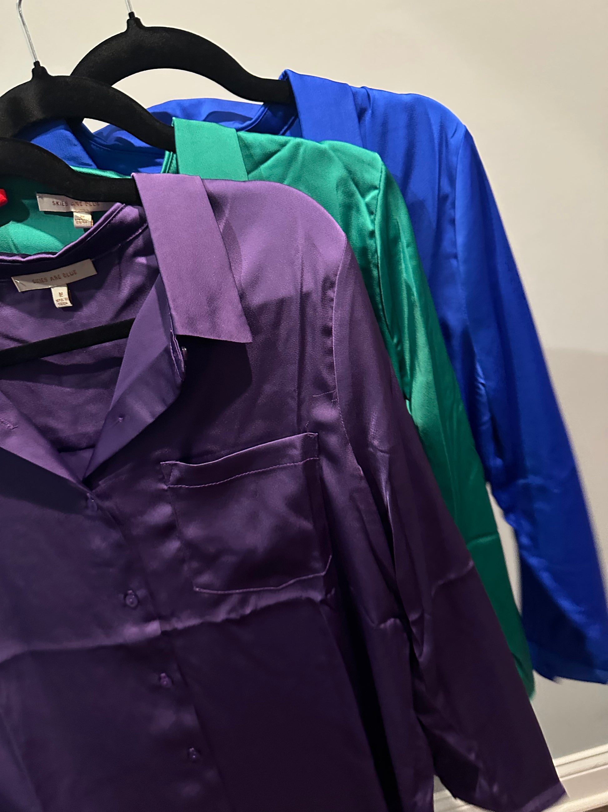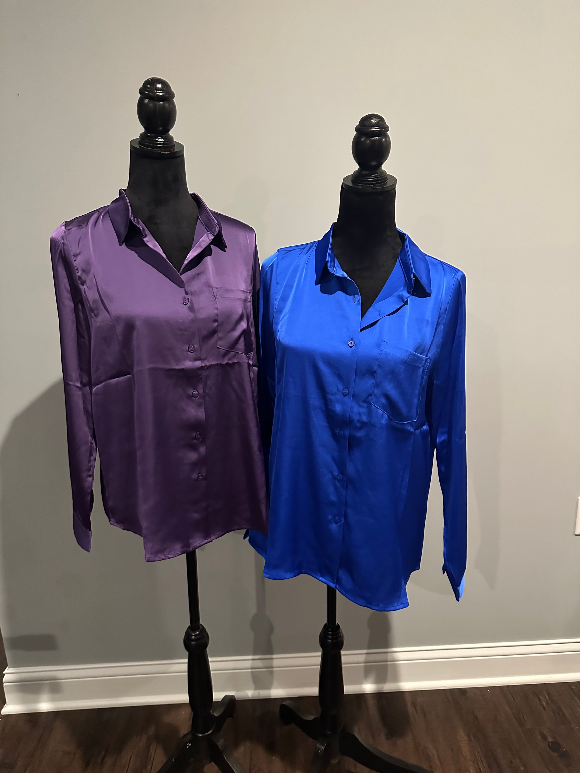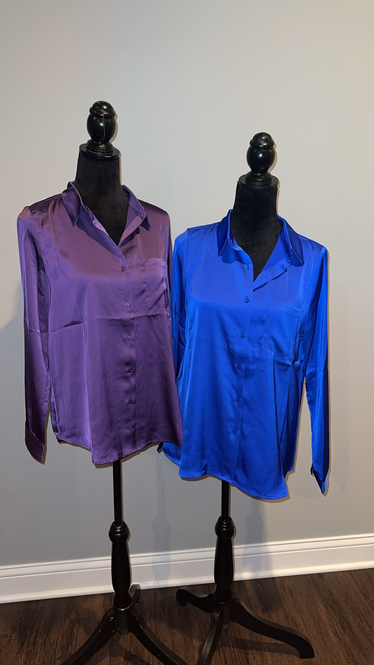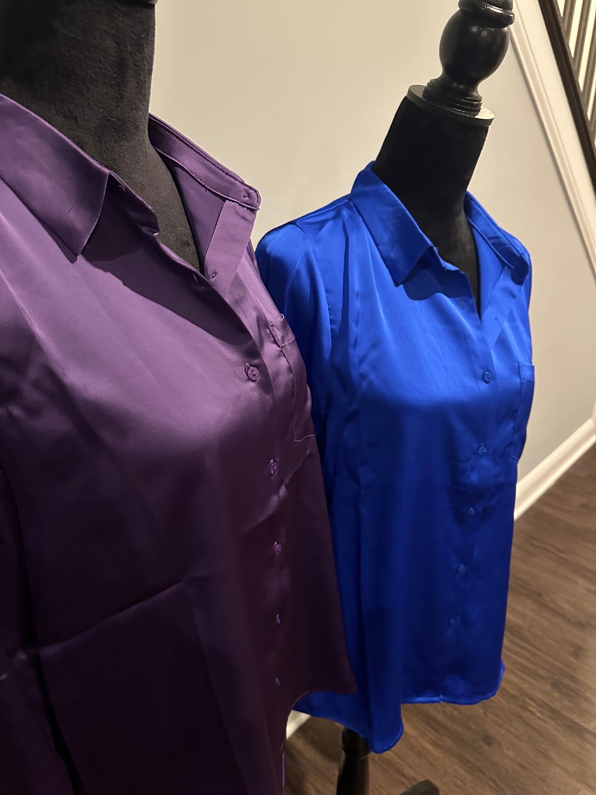 LONG SLEEVE SATIN BUTTON DOWN SHIRT WITH POCKET *6colors