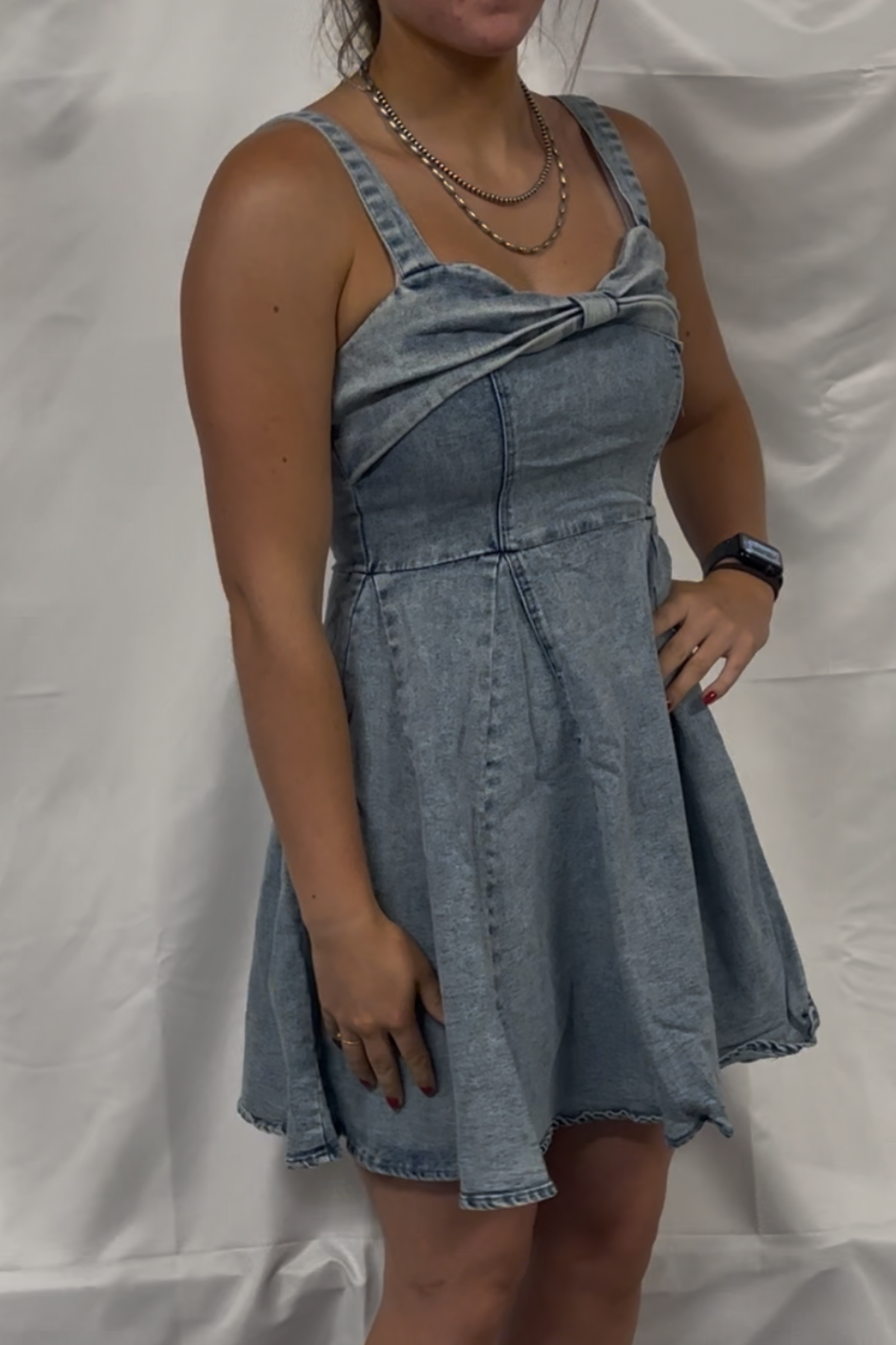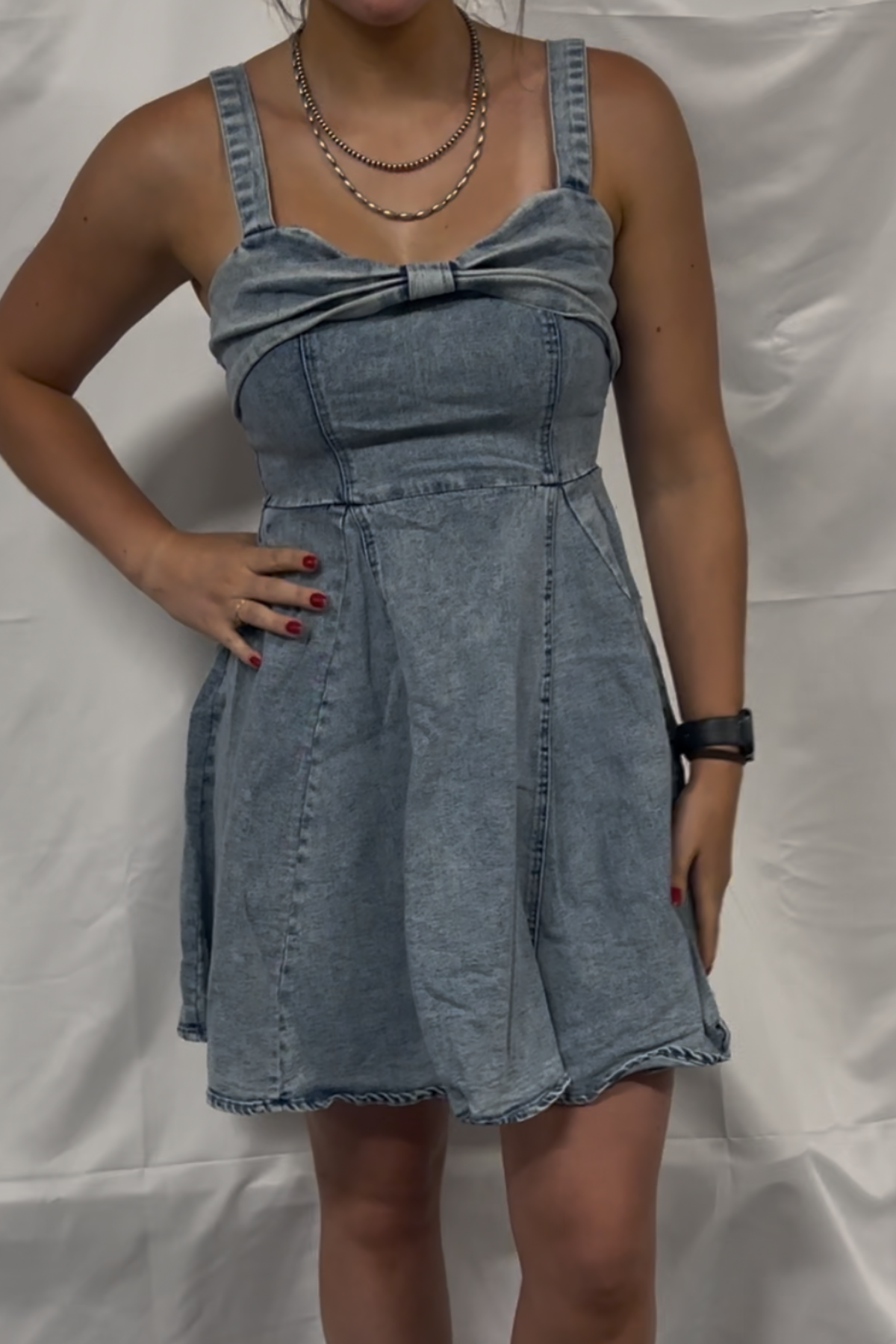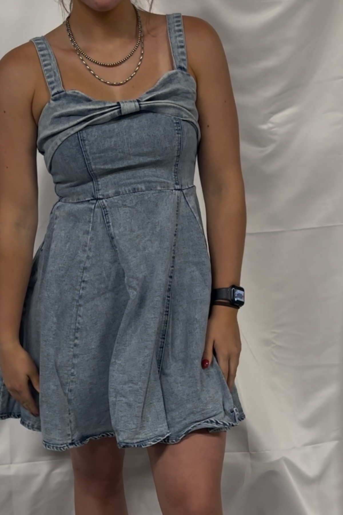 Mineral Washed Bow Ribbon Denim Flare Dress