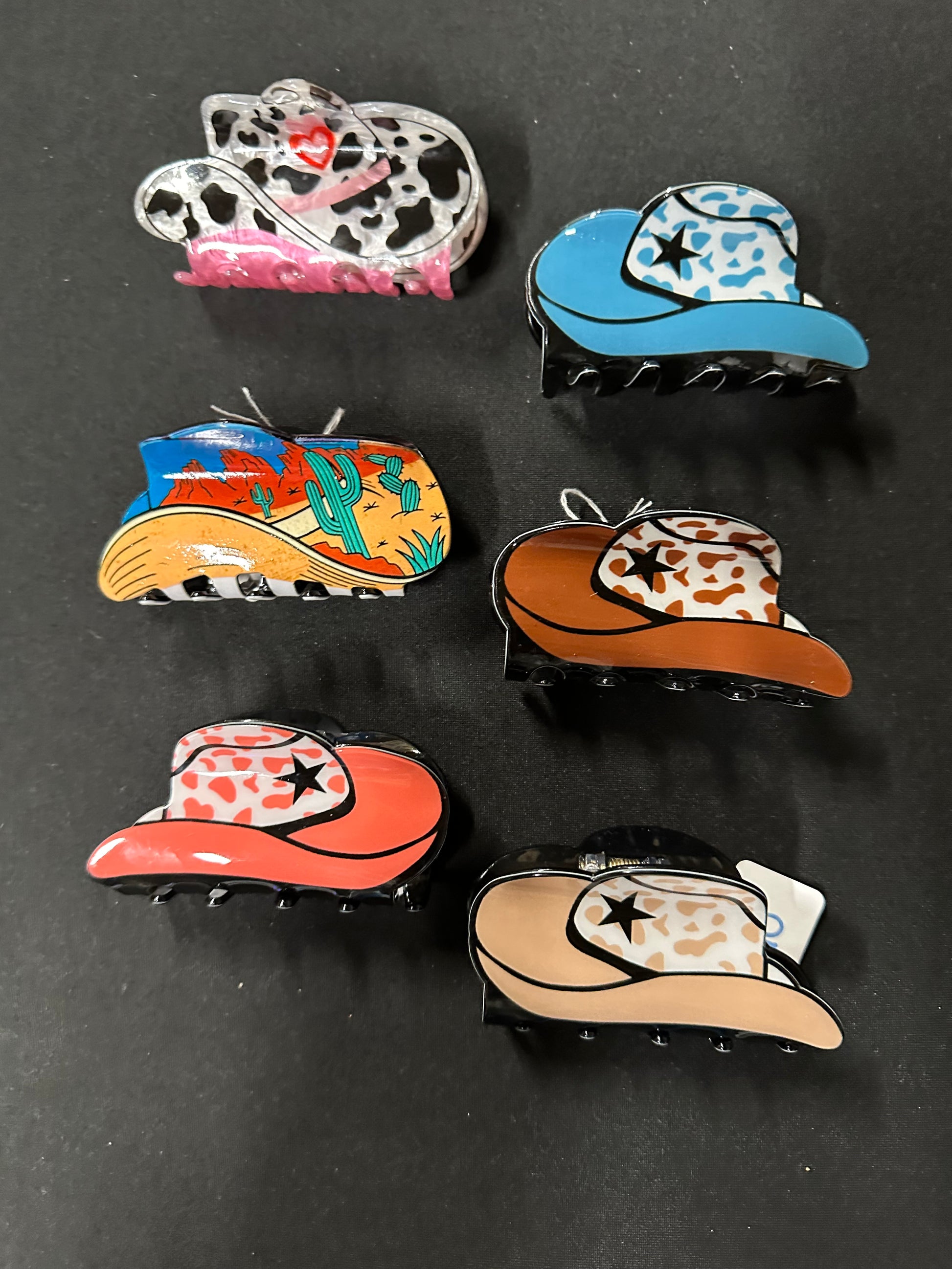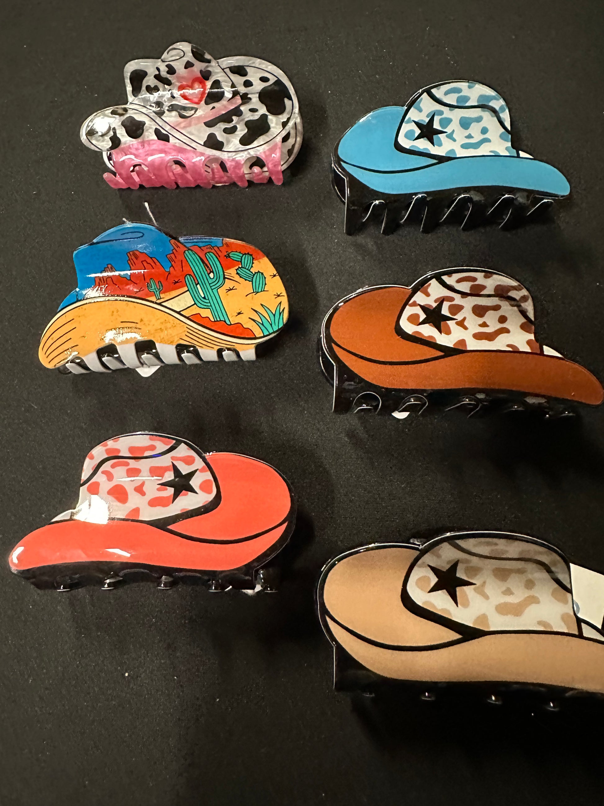 Add a touch of western chic to your hairstyle with these mini cowboy hat claw clips. Made of high-quality materials, they are both durable and stylish. Perfect for adding a playful accent to any outfit.