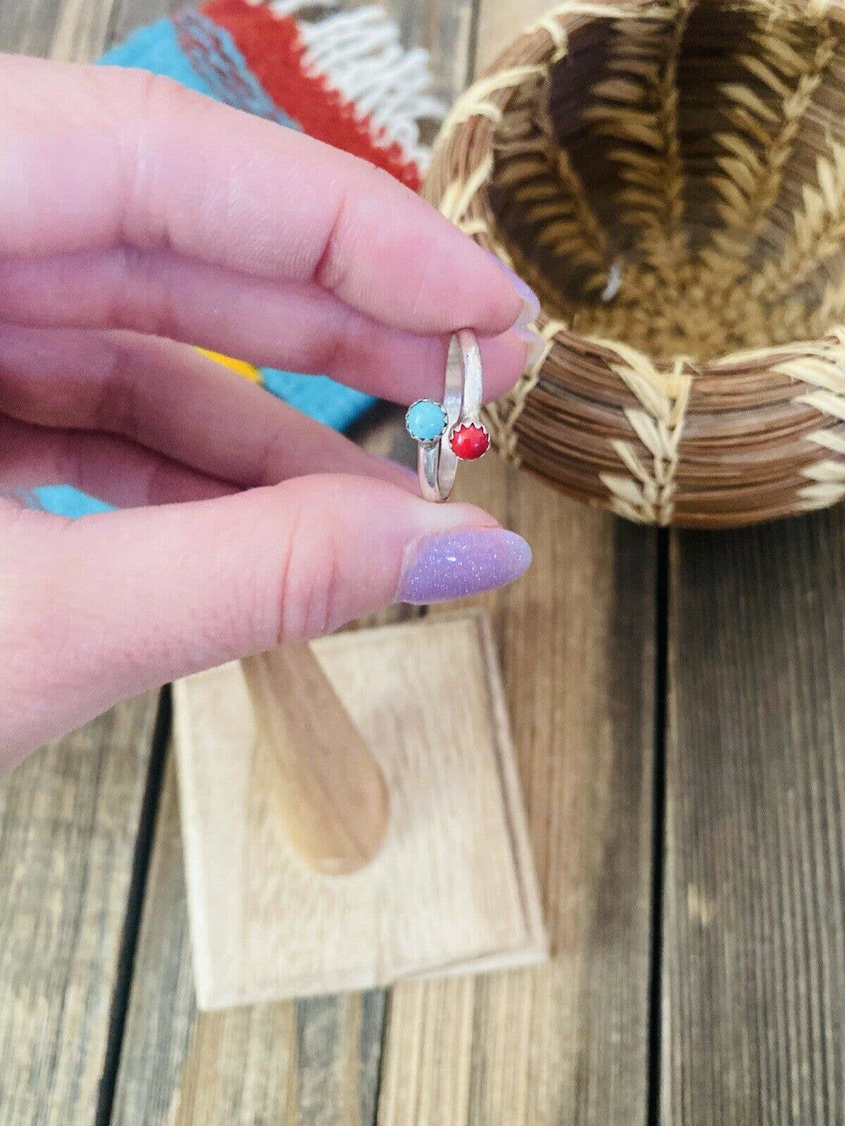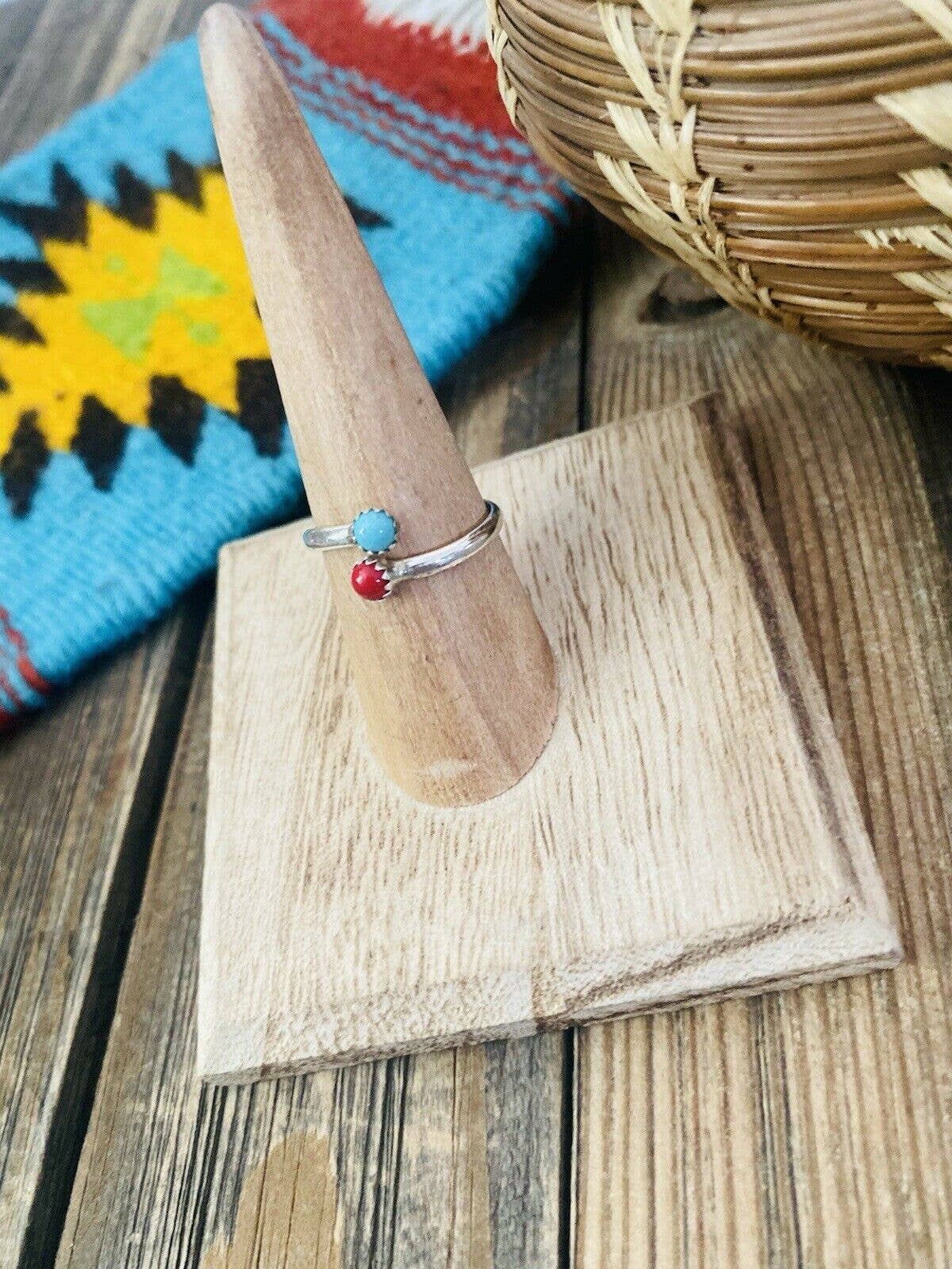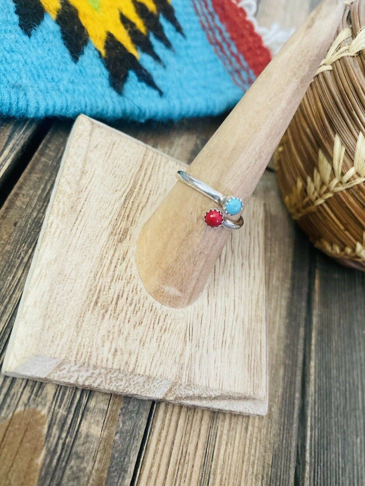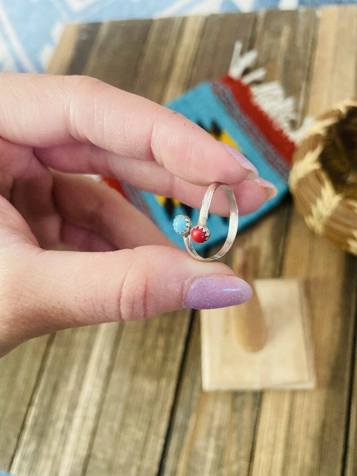 Navajo Sterling Silver, Coral & Turquoise Adjustable Ring