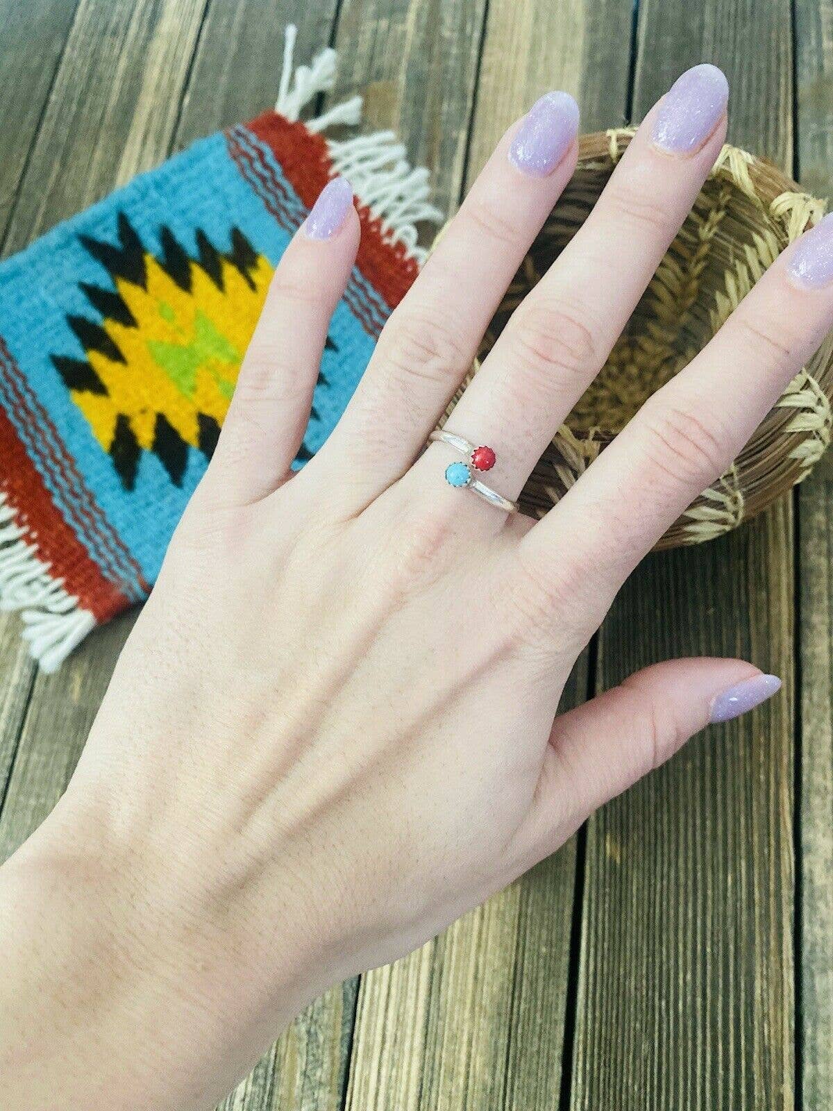 New without tags * ETHNIC & REGIONAL STYLE : Native American * COLOR : Blue * MAIN STONE COLOR : Turquoise * METAL : Sterling Silver * SECONDARY STONE : Coral * MAIN STONE : Turquoise * LOT : No * BRAND : Nizhoni Traders LLC * RING SIZE : Adjustable * JEWELRY TYPE : Rings * TYPE : Ring * FEATURES : Adjustable * TRIBAL AFFILIATION : Navajo Navajo Sterling Silver, Coral and Turquoise Adjustable Ring. Great, simple ring for everyday! Ring measures 3/8 of an inch wide. Stamped Sterling. Great gift idea! Stones are natural and may vary. Thank you for looking at our items. Please contact us if you have any questions. Navajo bin#6 5/30/25 BM