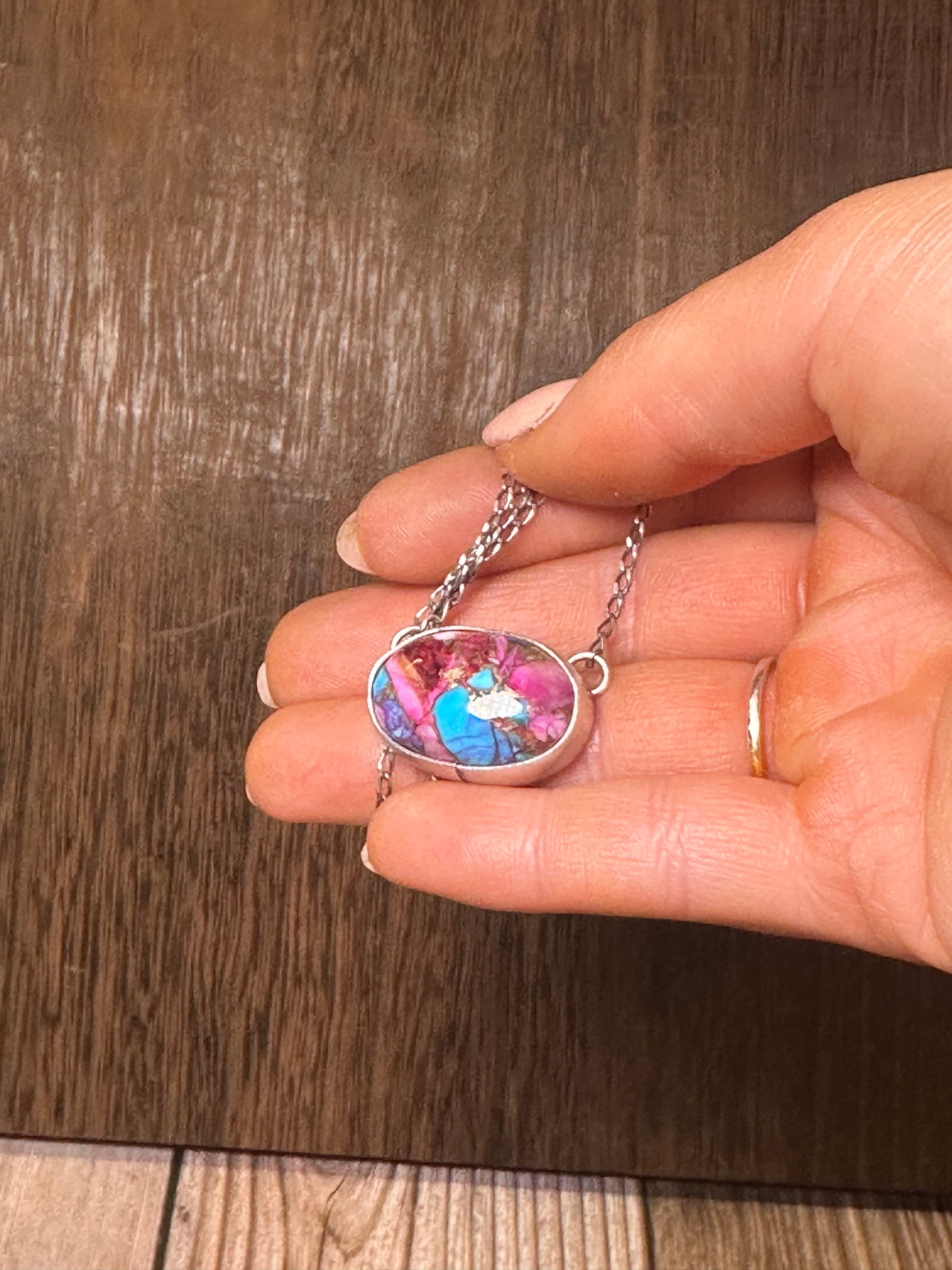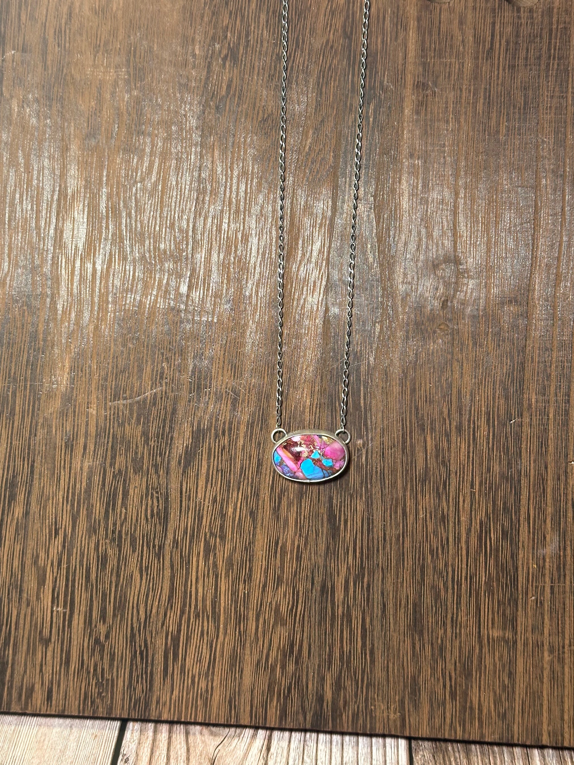 Navajo Sterling Silver & Pink Dream Mojave Oval Necklace