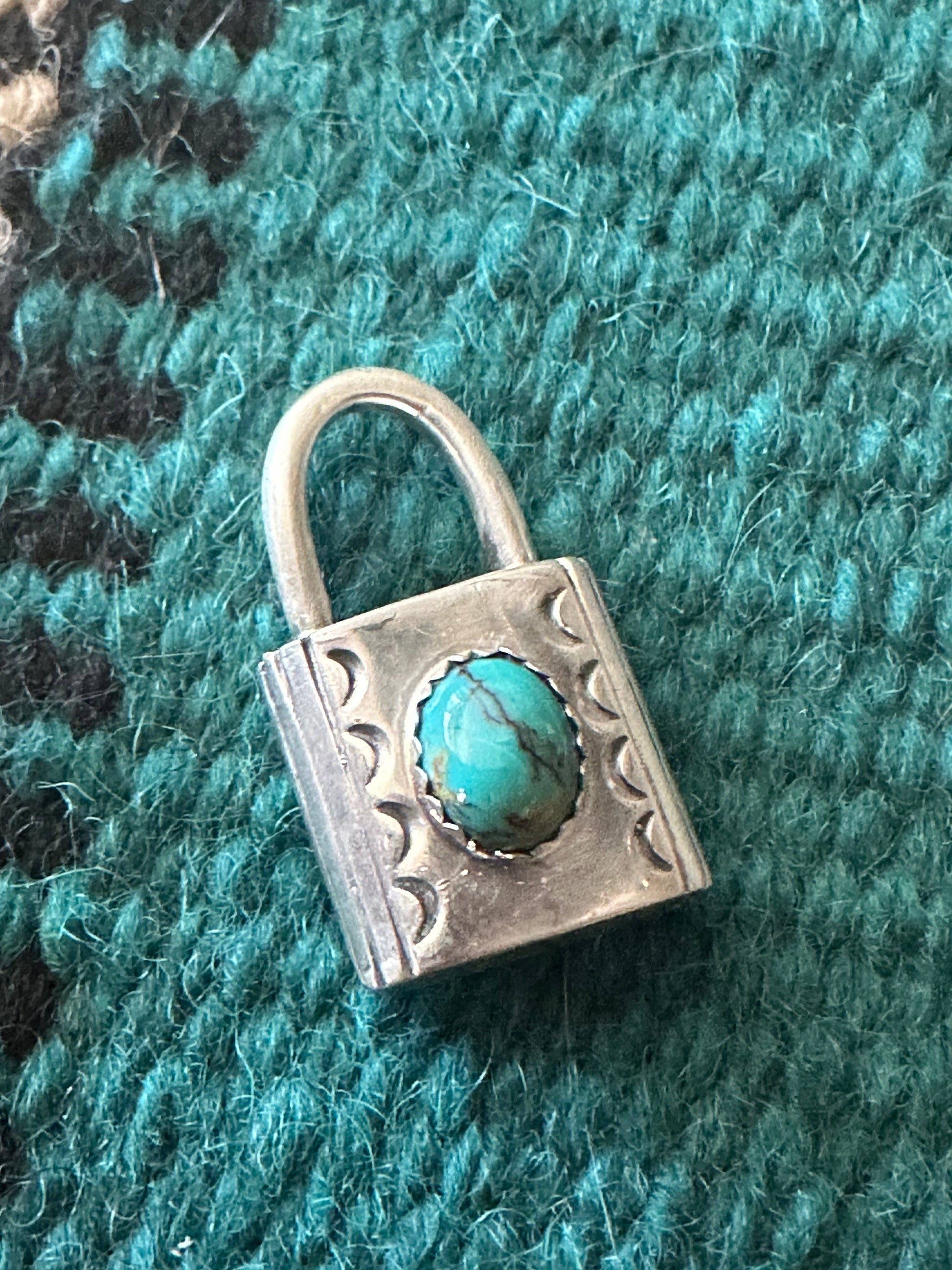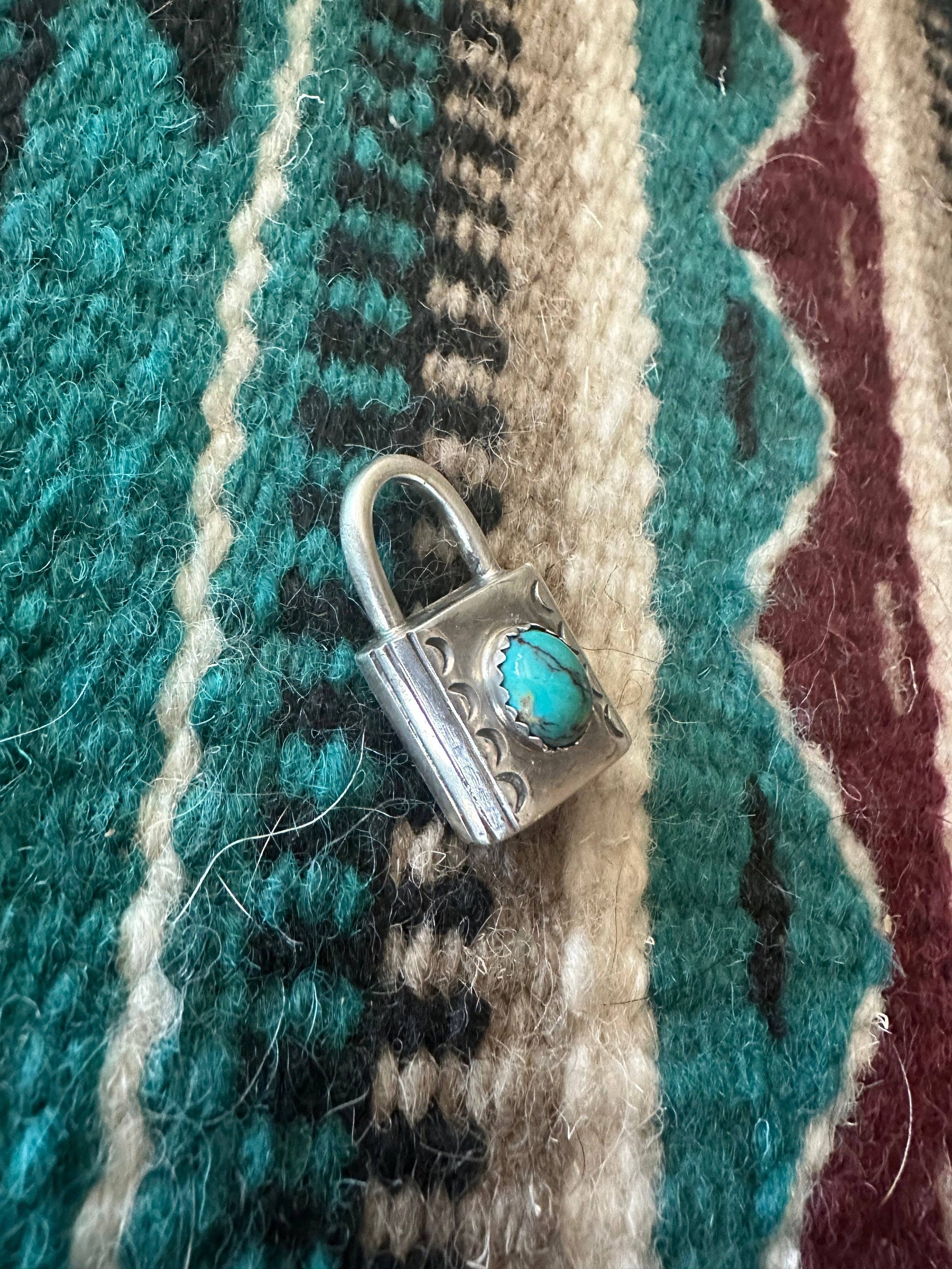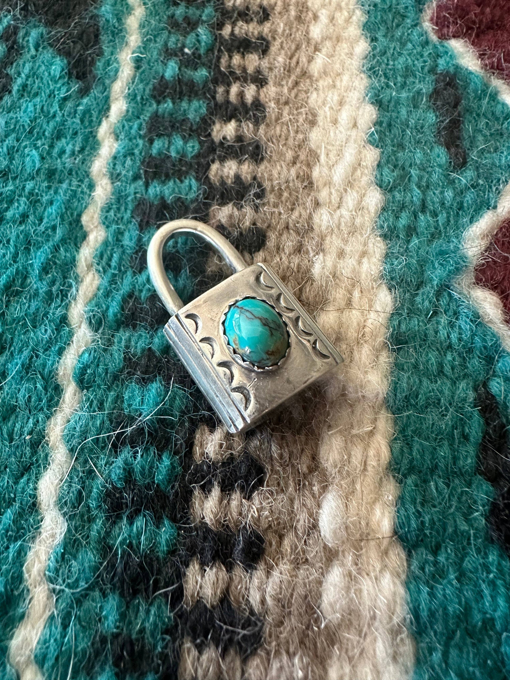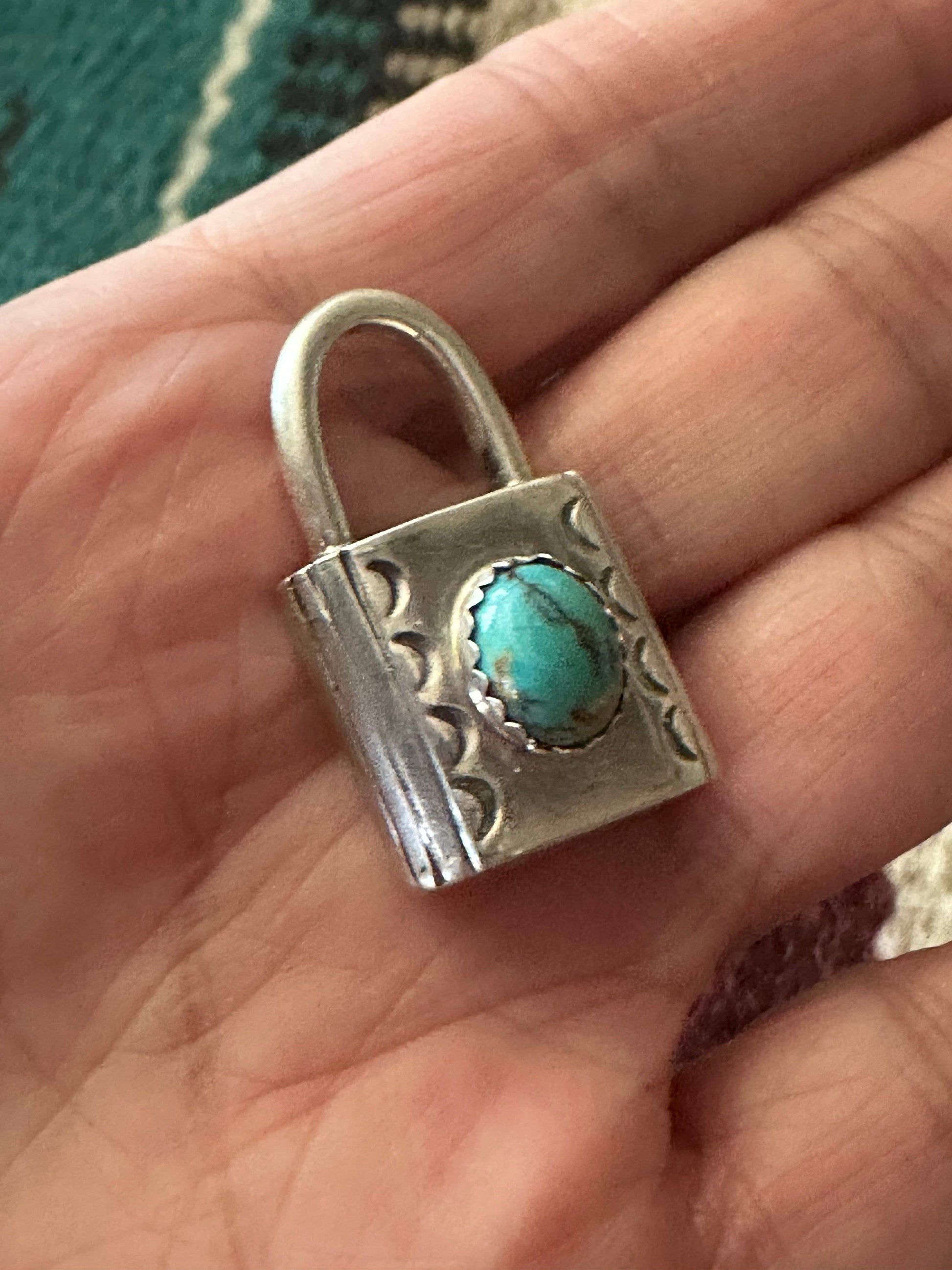 Navajo Turquoise & Sterling Silver Locket Pendant Signed