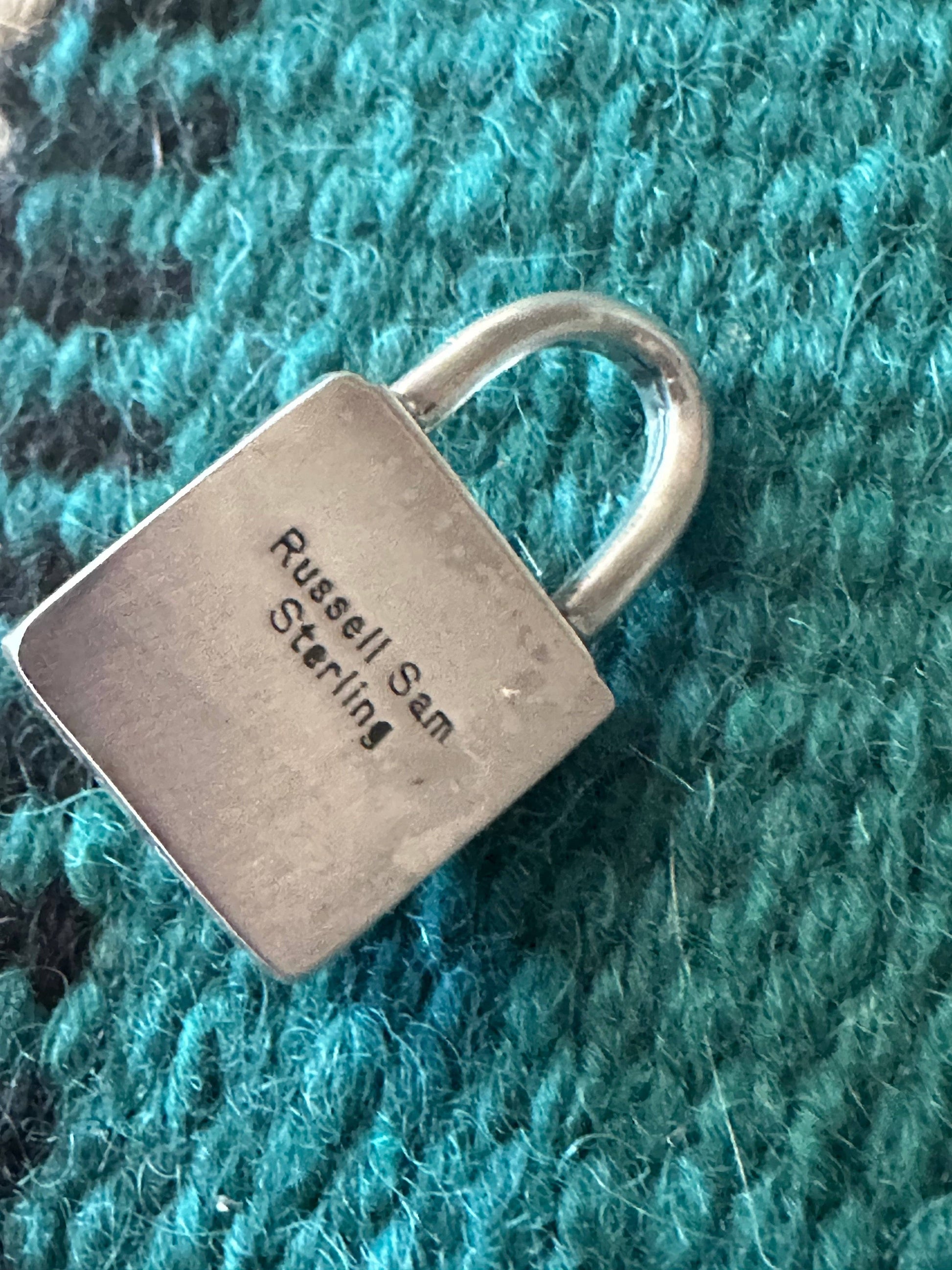 Navajo Sterling Silver & Turquoise Locket Pendant. Great for your favorite beads or pearls . Measuring 1 1/4 inches long and 3/4 of an inch wide. Signed by the artist Russell Sam and stamped Sterling. Pendant only.