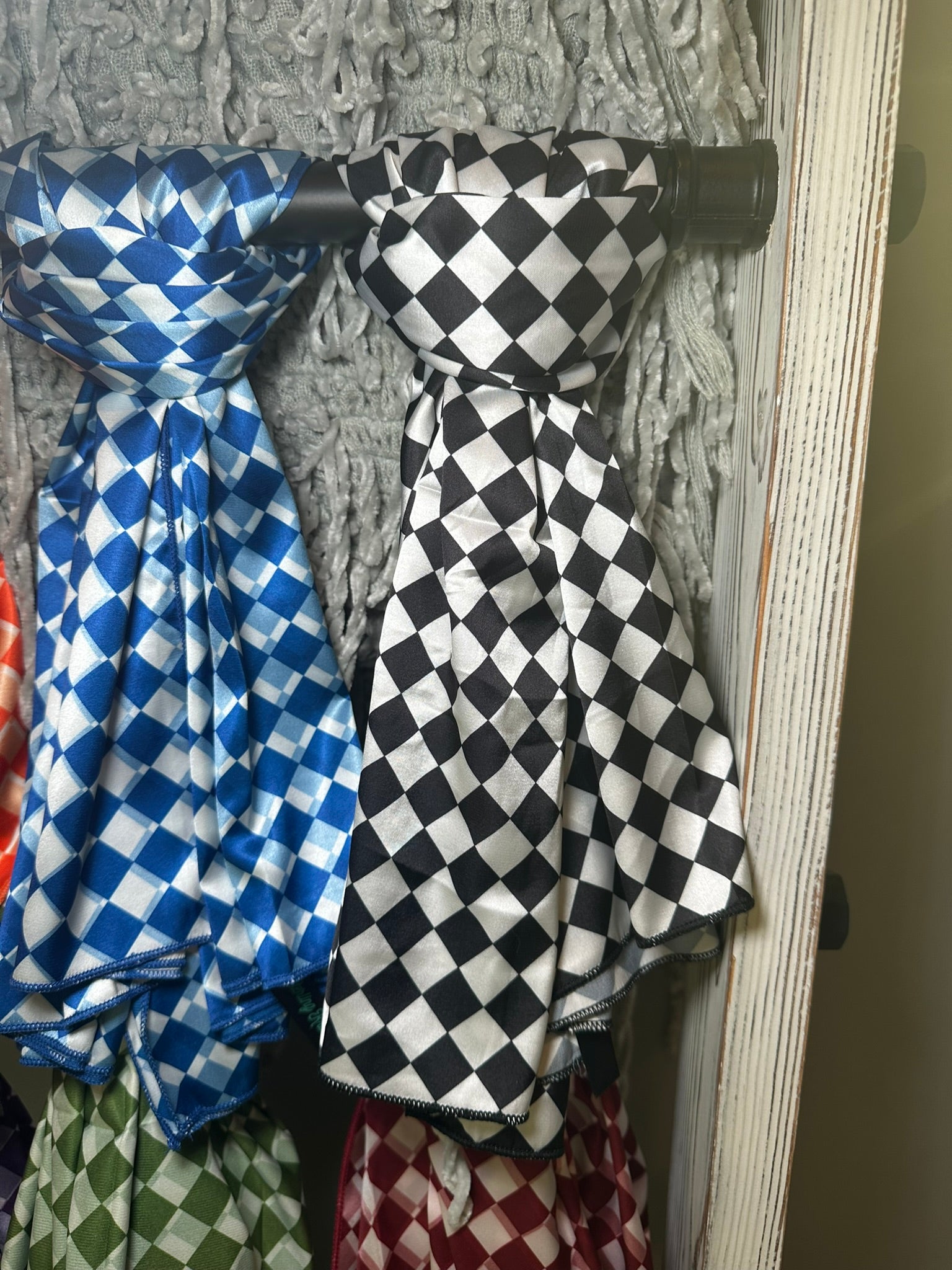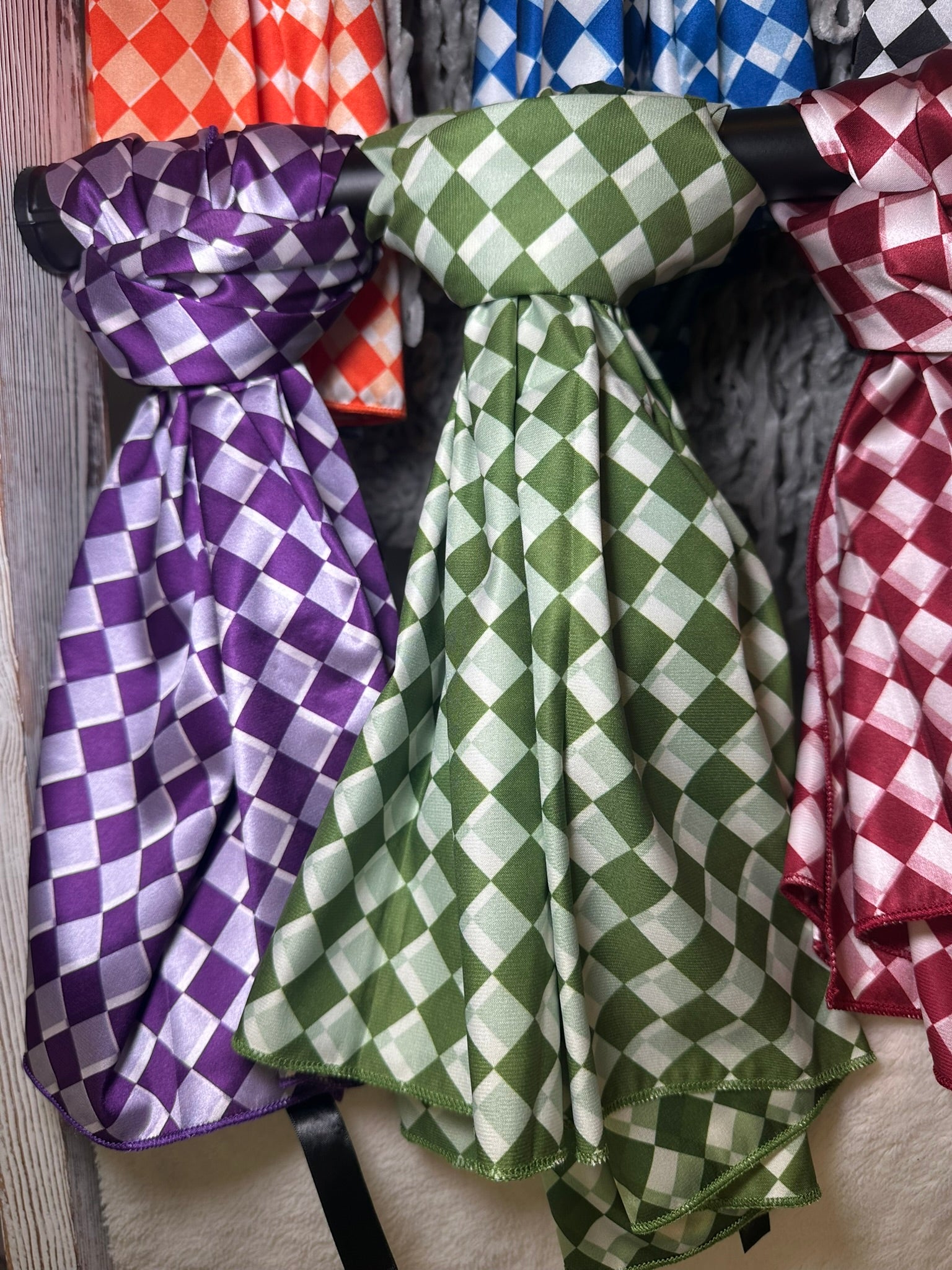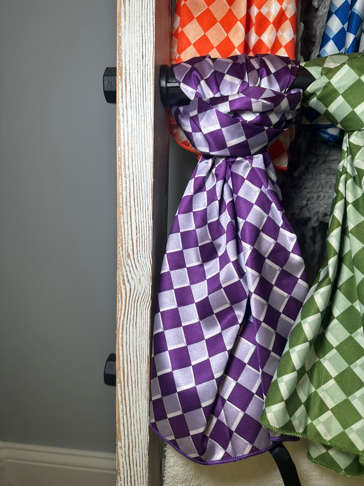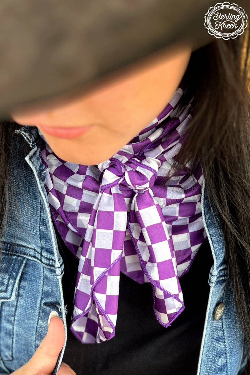 Unleash your inner spirit with the Pep Rally Wild Rag in the bold shade of purple and crisp white checks. Perfect for any event, this versatile wild rag adds a touch of playfulness to your outfit. Show off your unique style and stand out from the crowd!