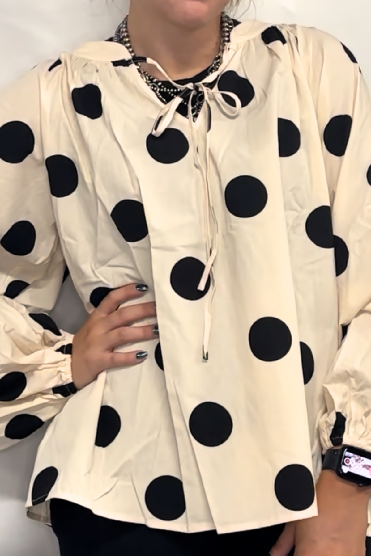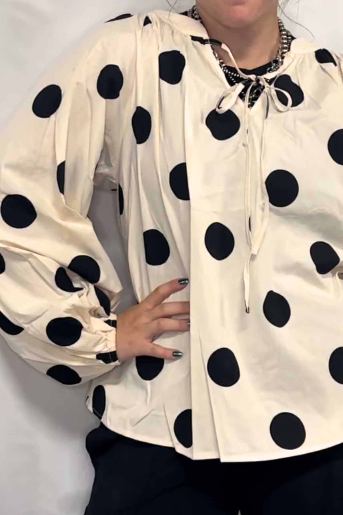POLKA DOT EXAGGERATED BALLOON SLEEVES TOP