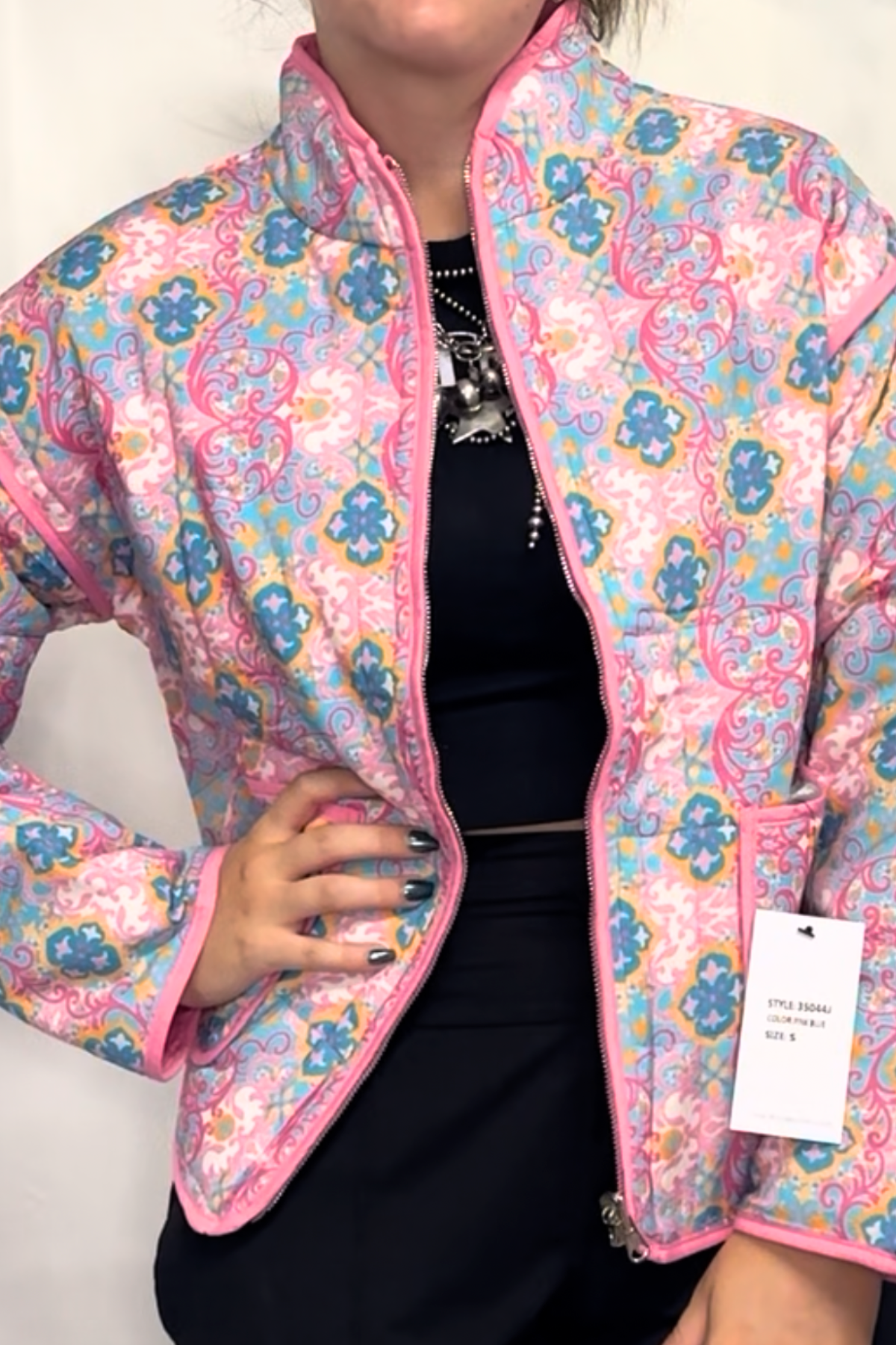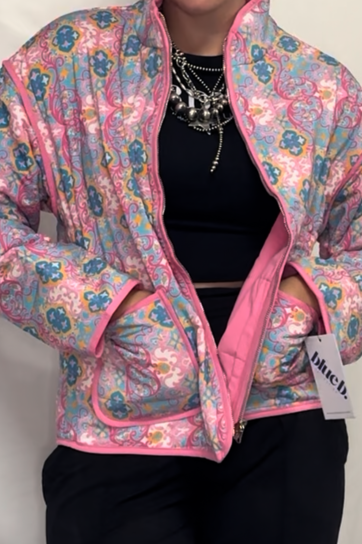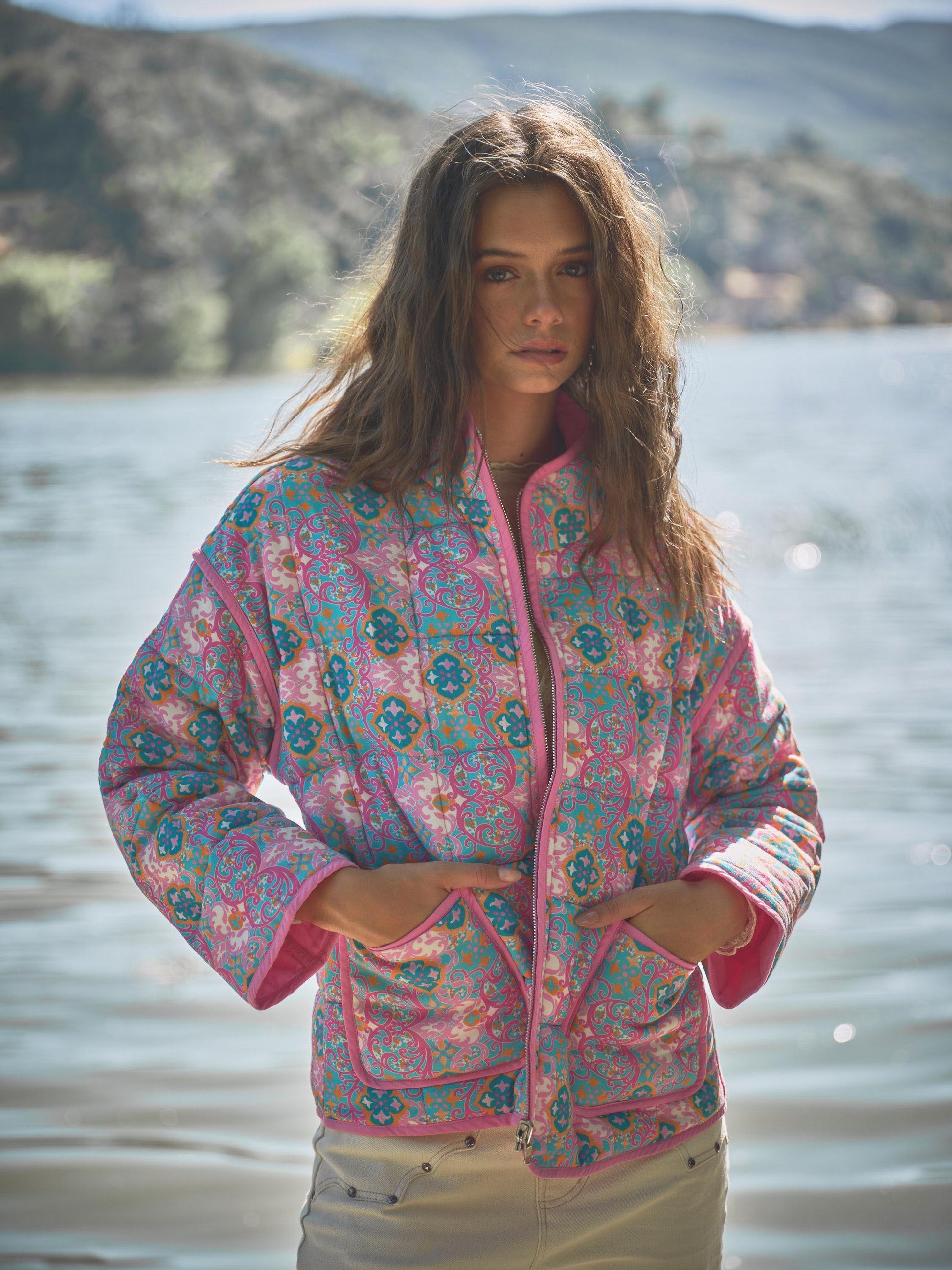 Stand out in this so special jacket featured in a slouchy, dolman-style silhouette and stunning floral print throughout designed to add the perfect touch to any look. A quilted, boho-inspired jacket features a slouchy silhouette with a print and reversible solid two-way wear defined piping for a unique cold-weather look.