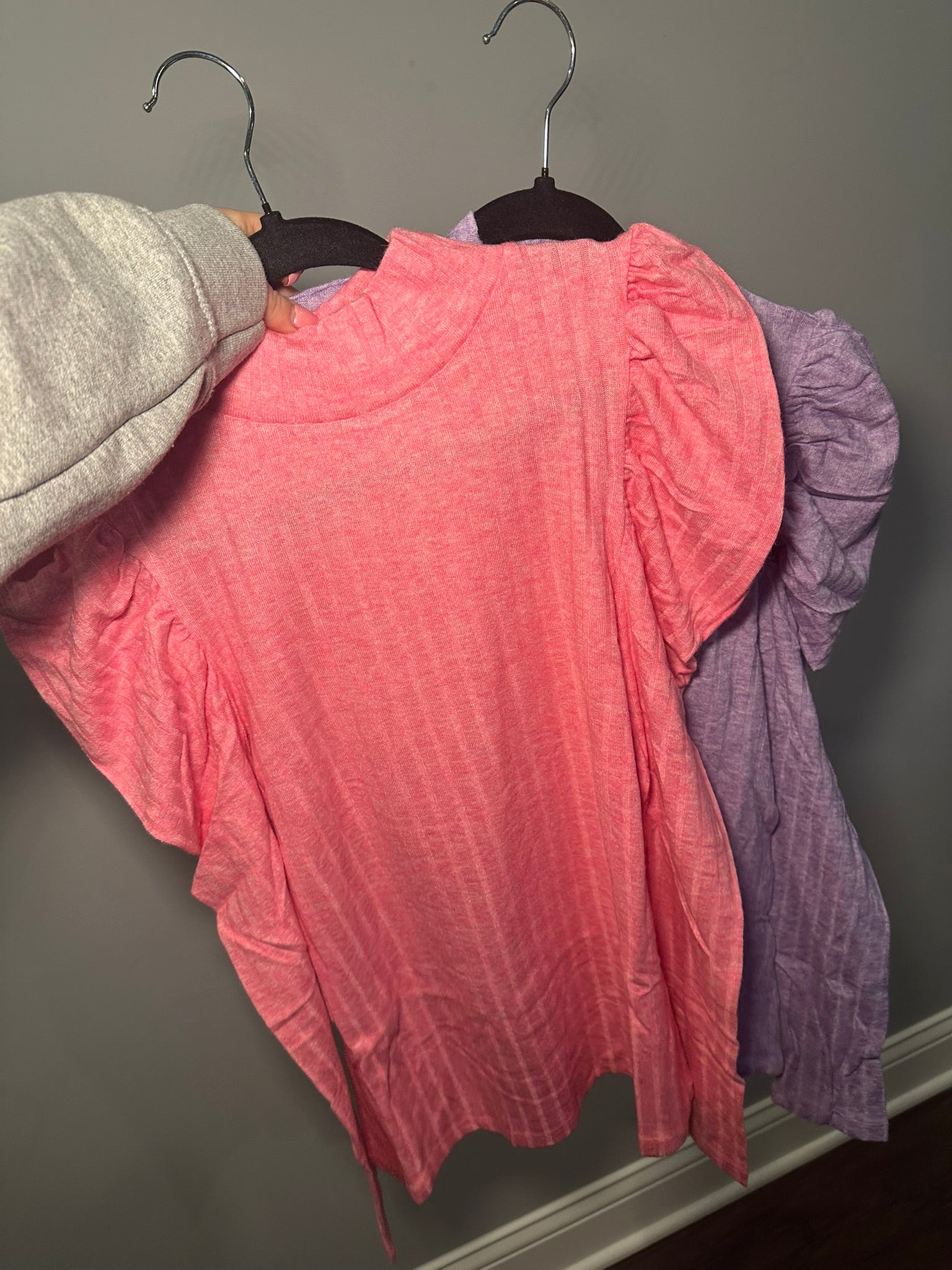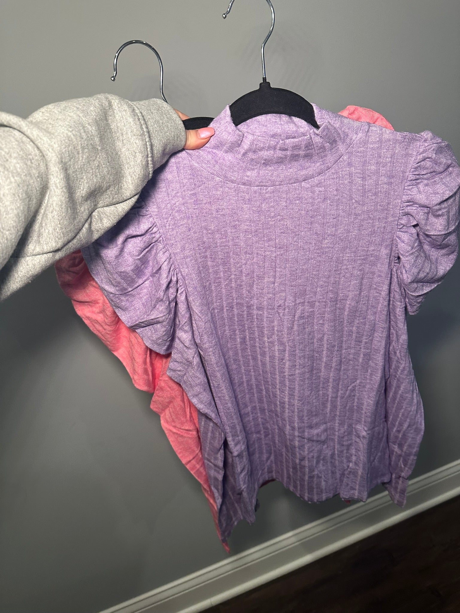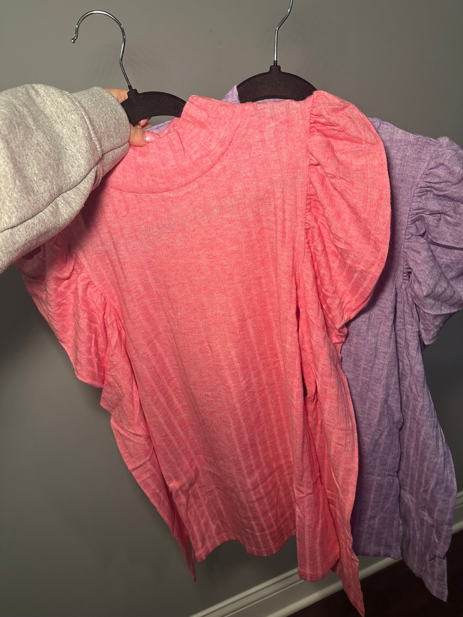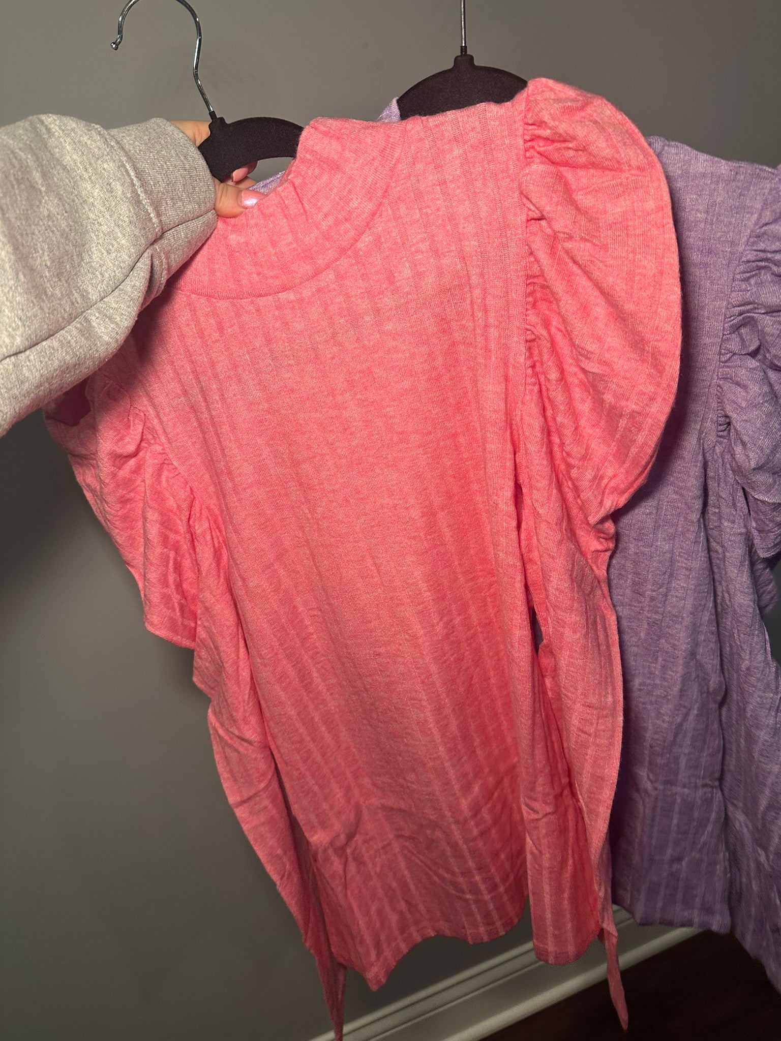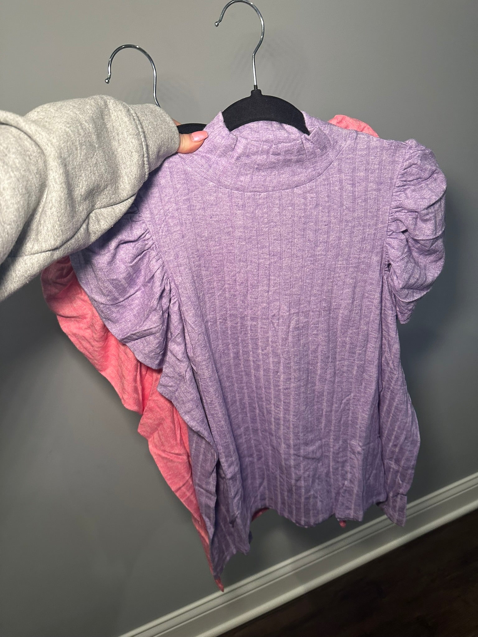 RIBBED PUFF LONG SLEEVE MOCK NECK TOP