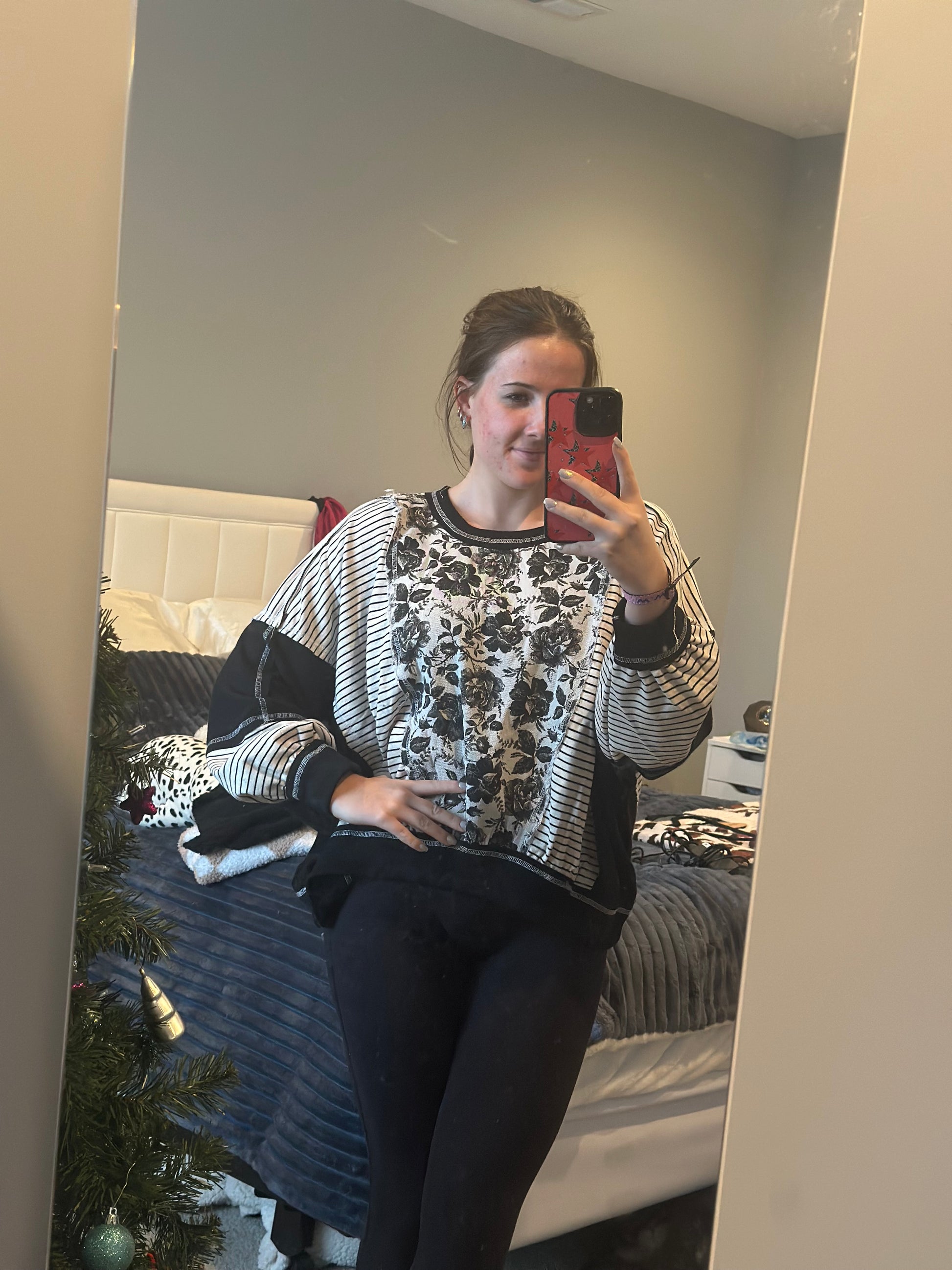 ROSE TWILL AND STRIPE MIX AND MATCH TOP WITH CUT EDGE DETAIL