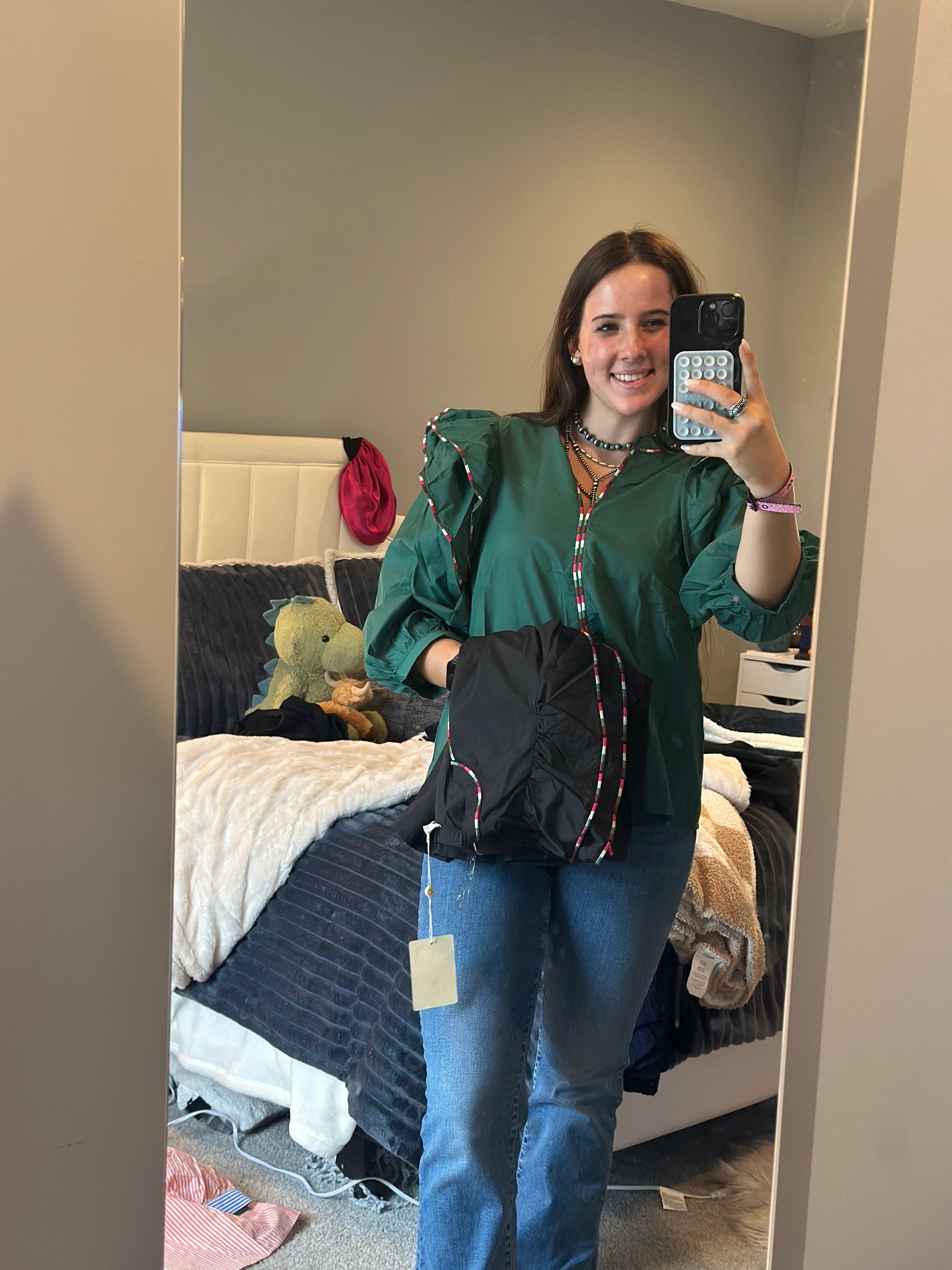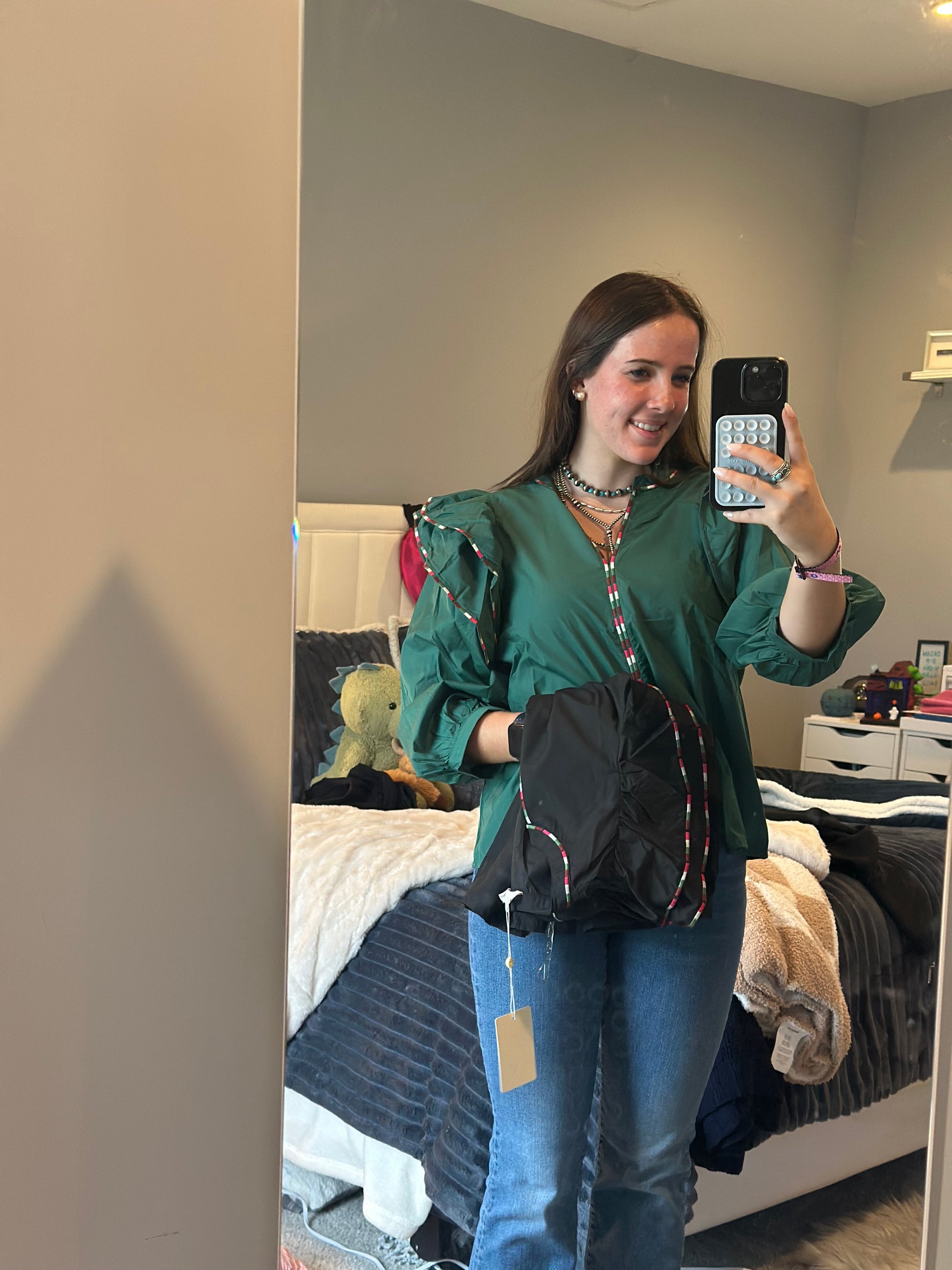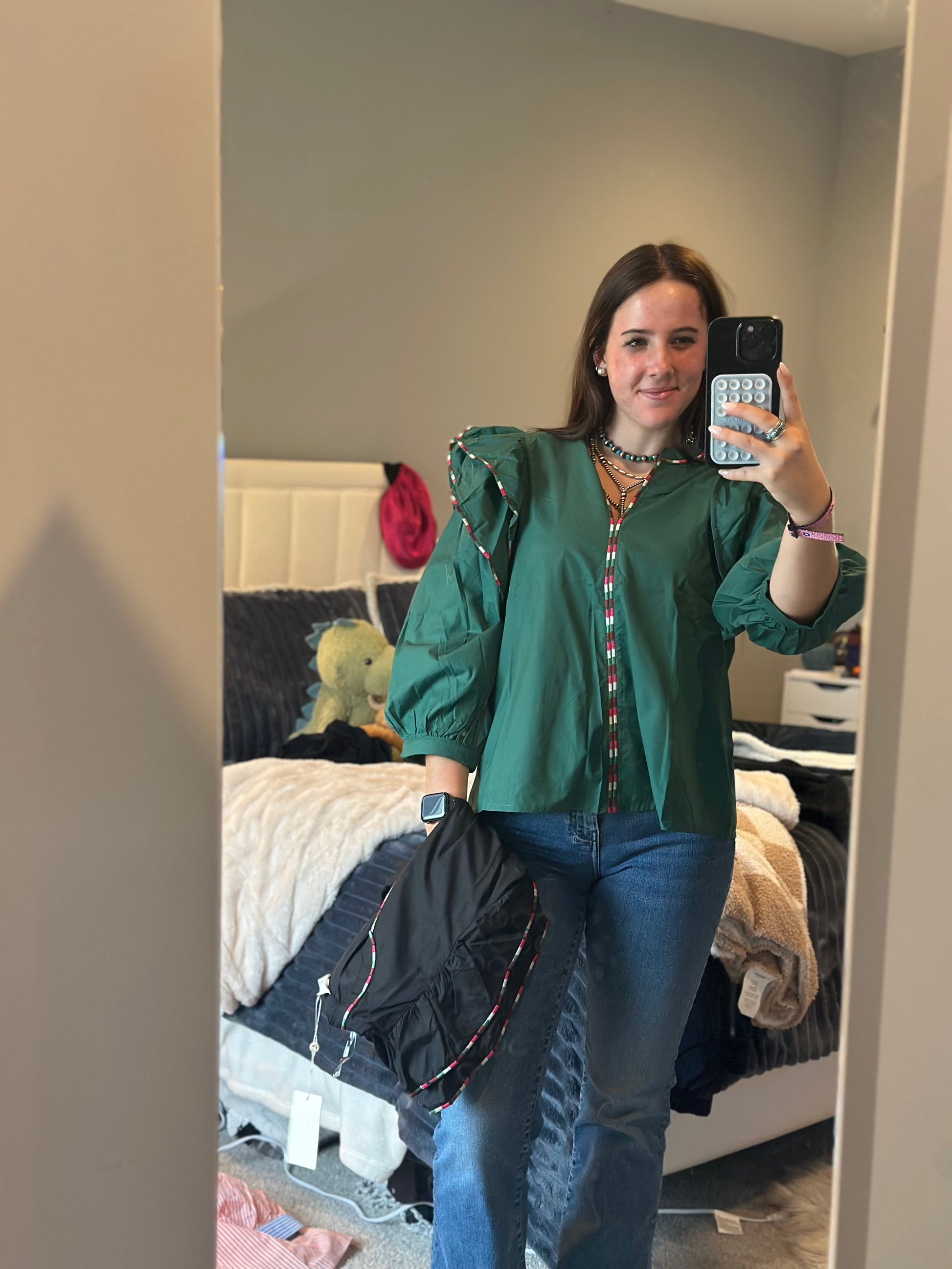 Ruffle Shoulder Contrast quarter sleeve blouse