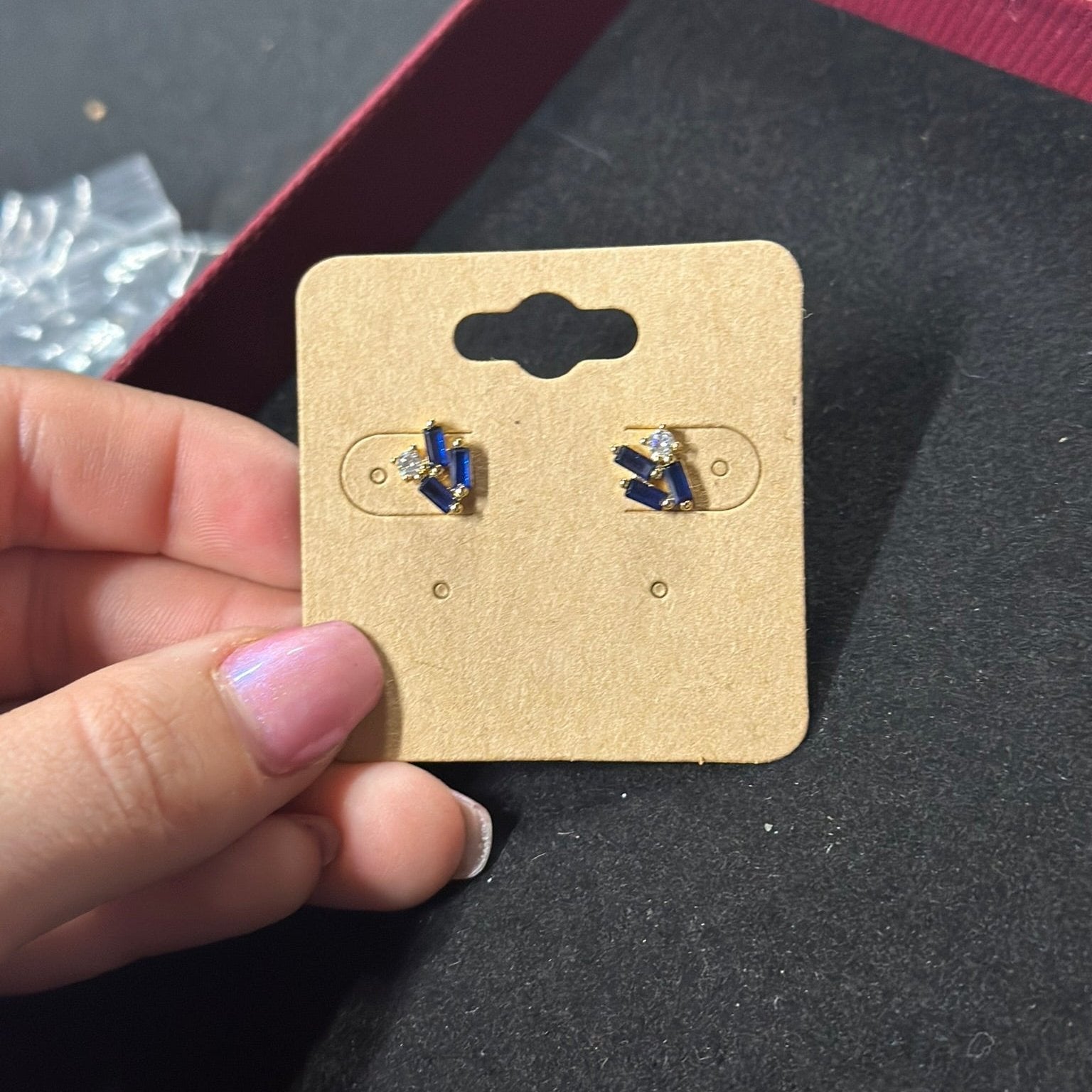 Sapphire Blue CZ Baguette Stud Earrings in 14K Gold