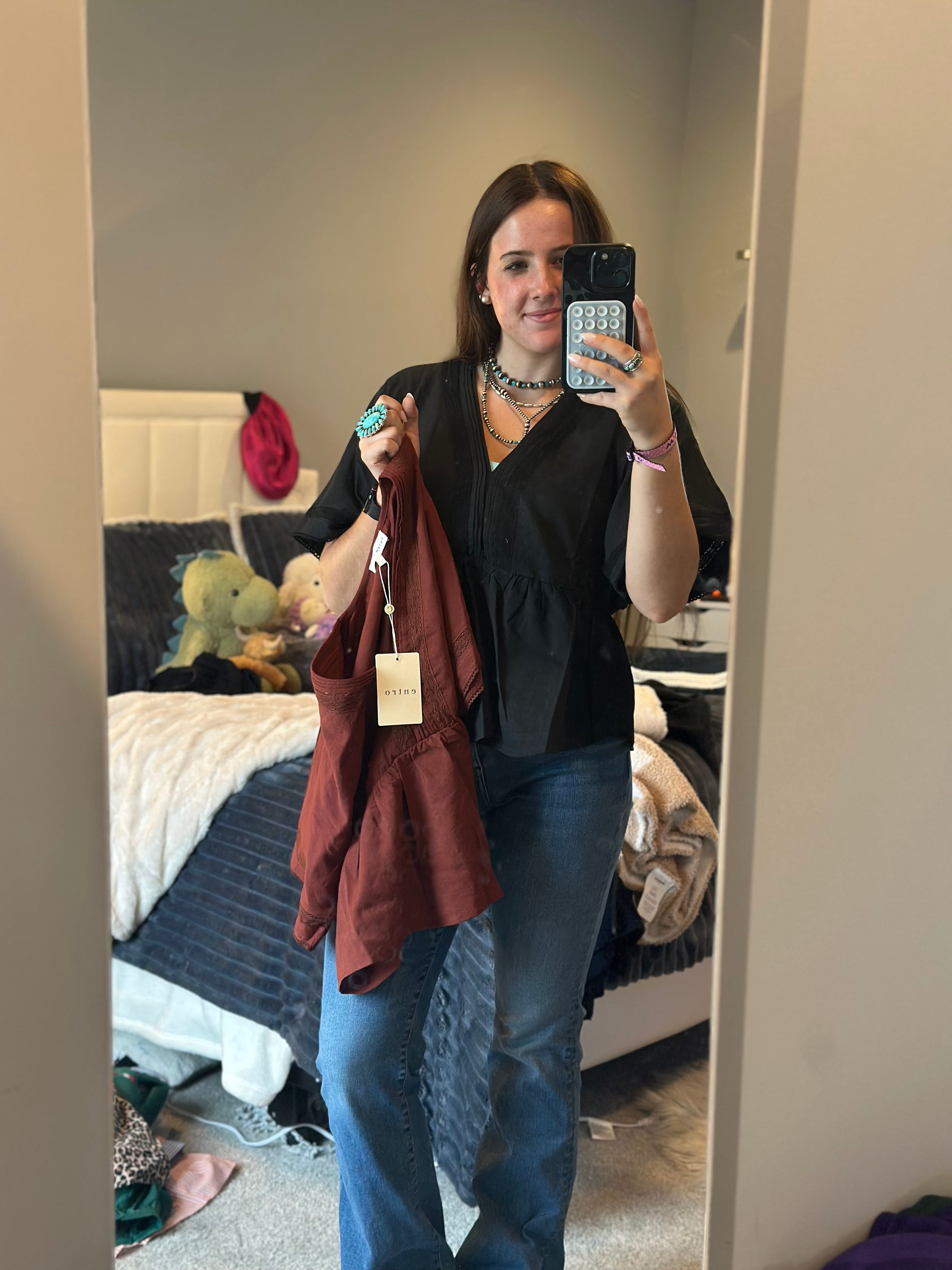 Solid short sleeve peplum top featuring pintuck and lace trim detail. Unlined. Woven. Non-sheer. Lightweight.