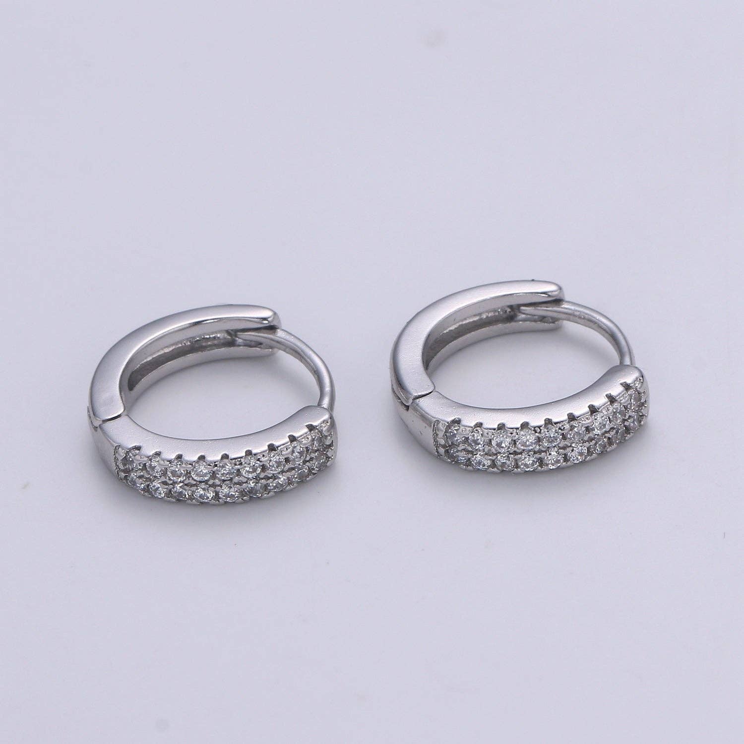 Small Silver Hoop Earrings, Baguette Earrings, Baguette Hoop