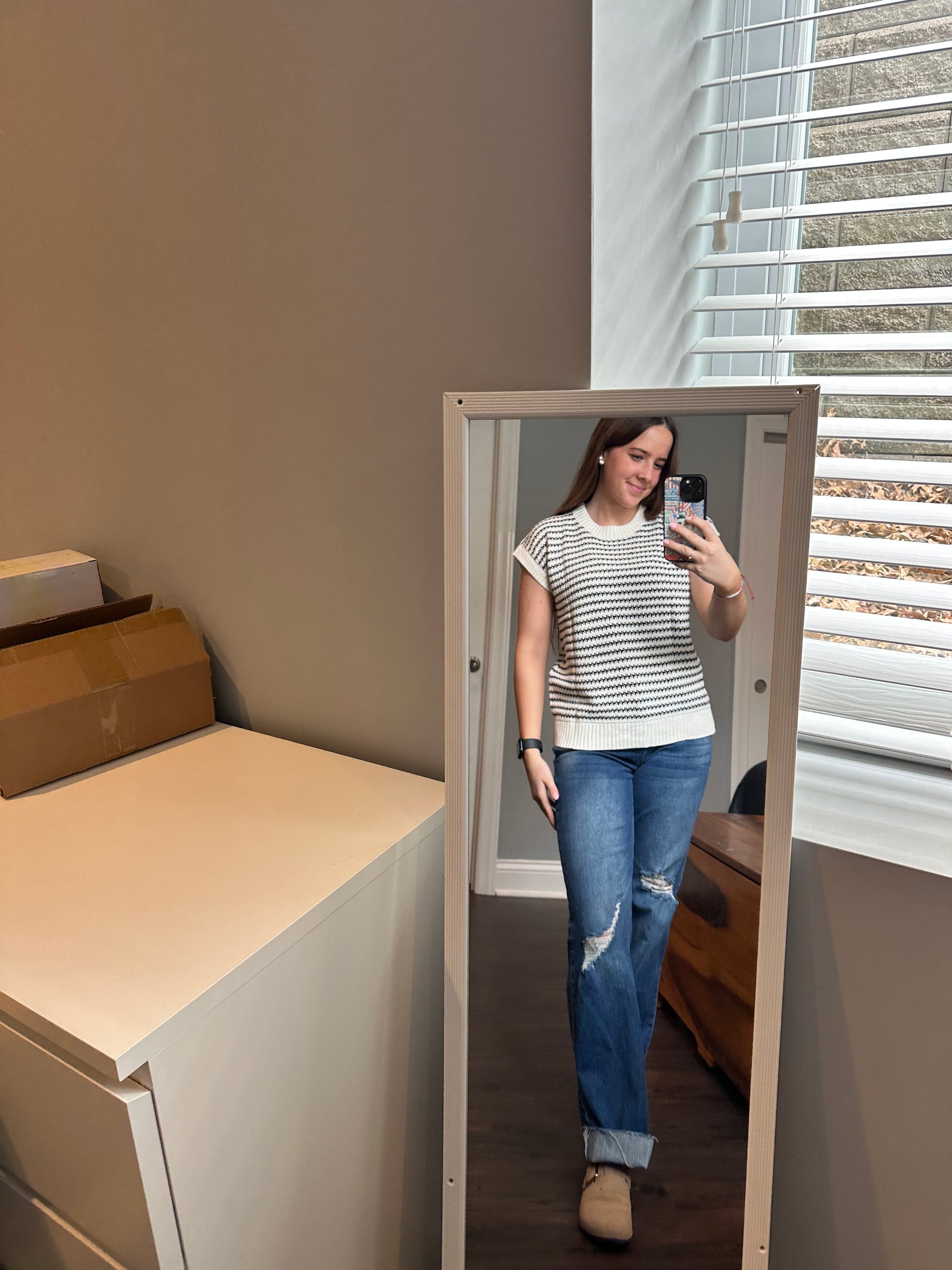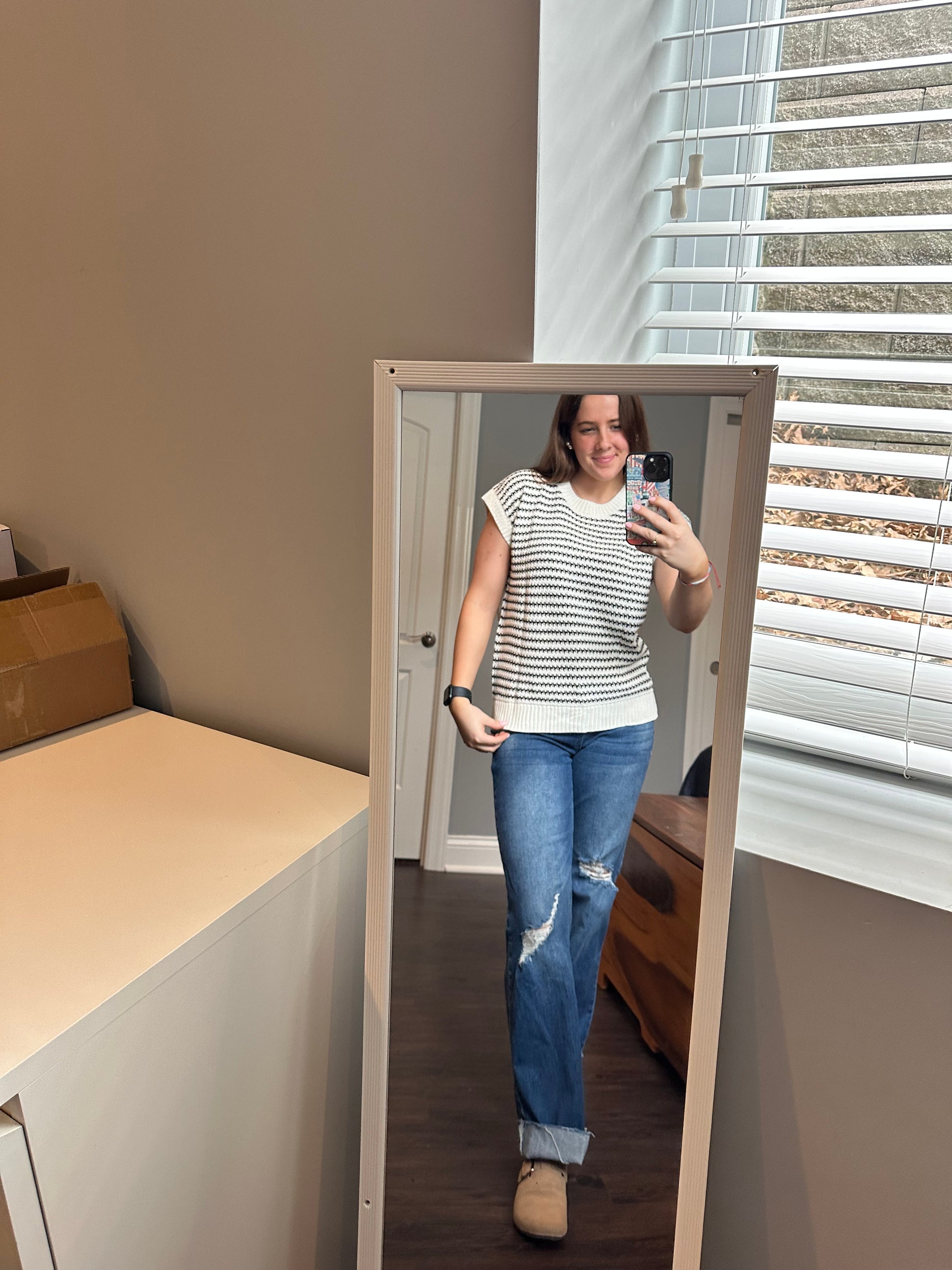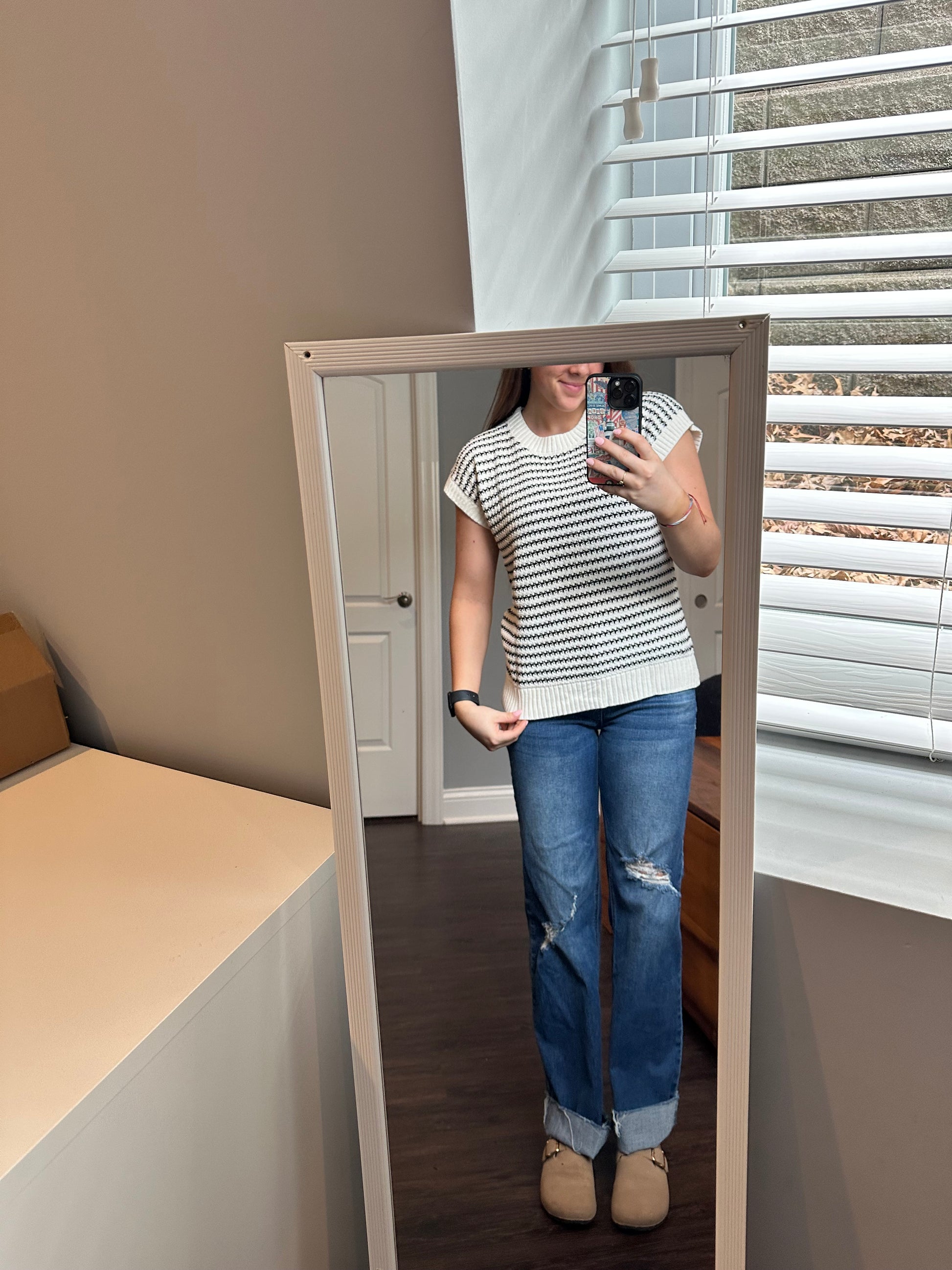 Stripe Contrast Trim Knit Dolman sweater vest *TWO COLORS*