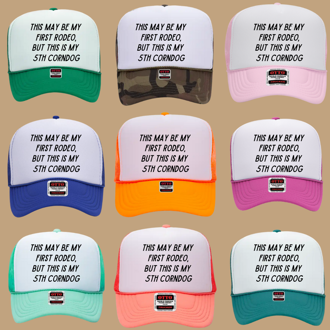 THIS MAY BE MY FIRST RODEO BUT THIS IS MY 5TH CORNDOG TRUCKER HAT *17 COLORS