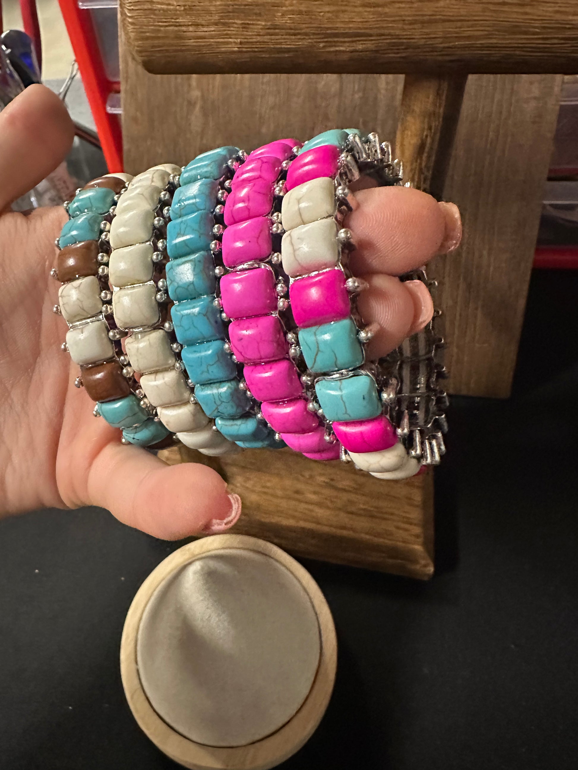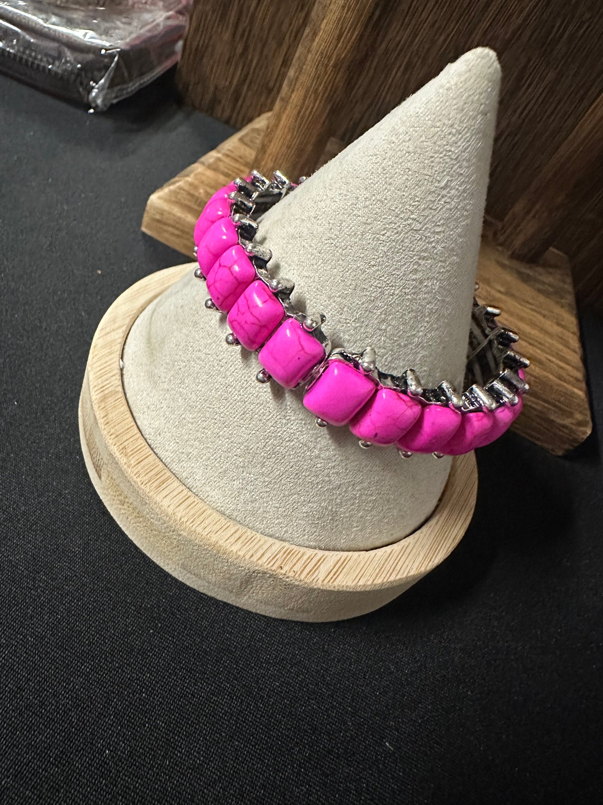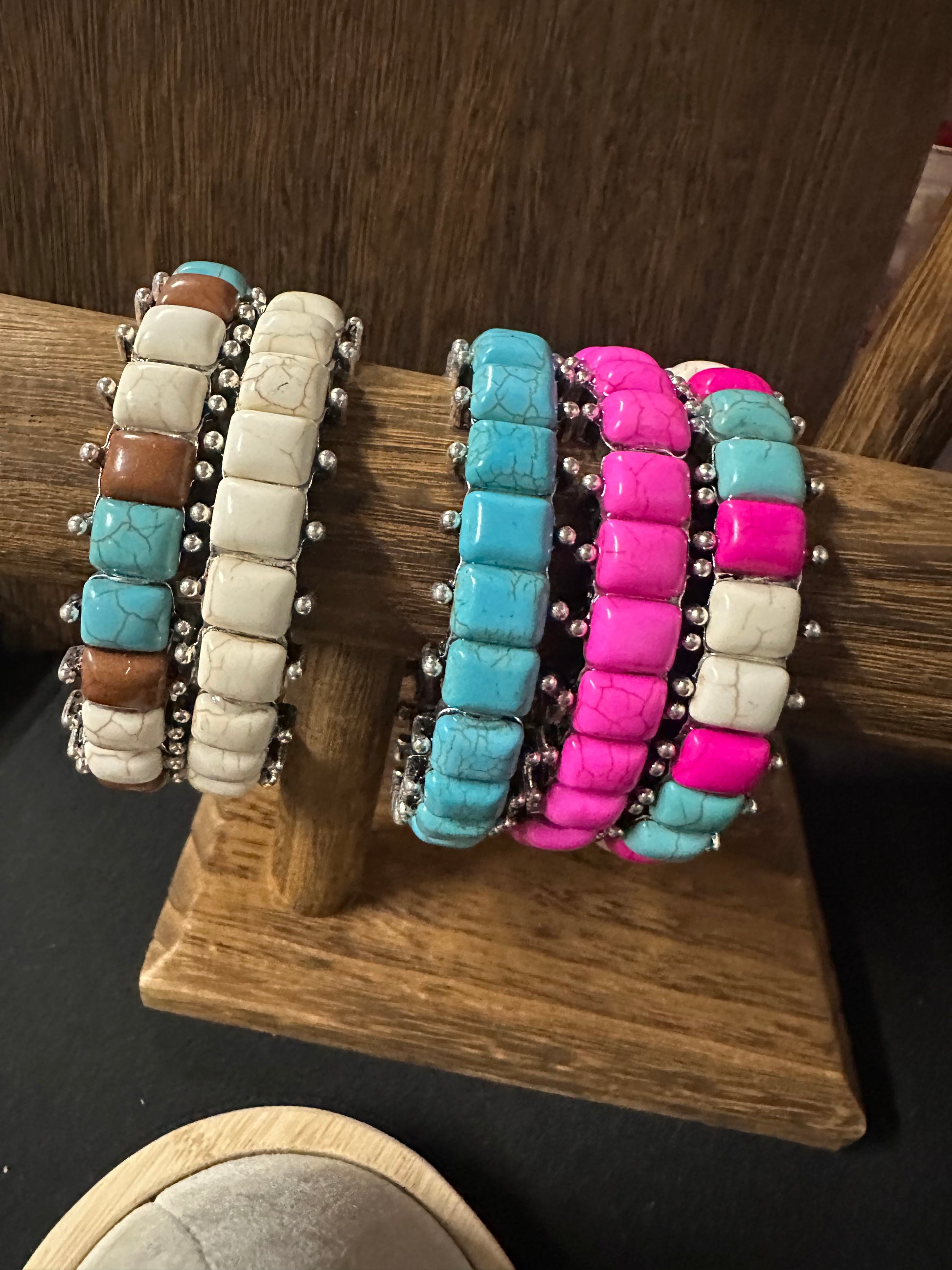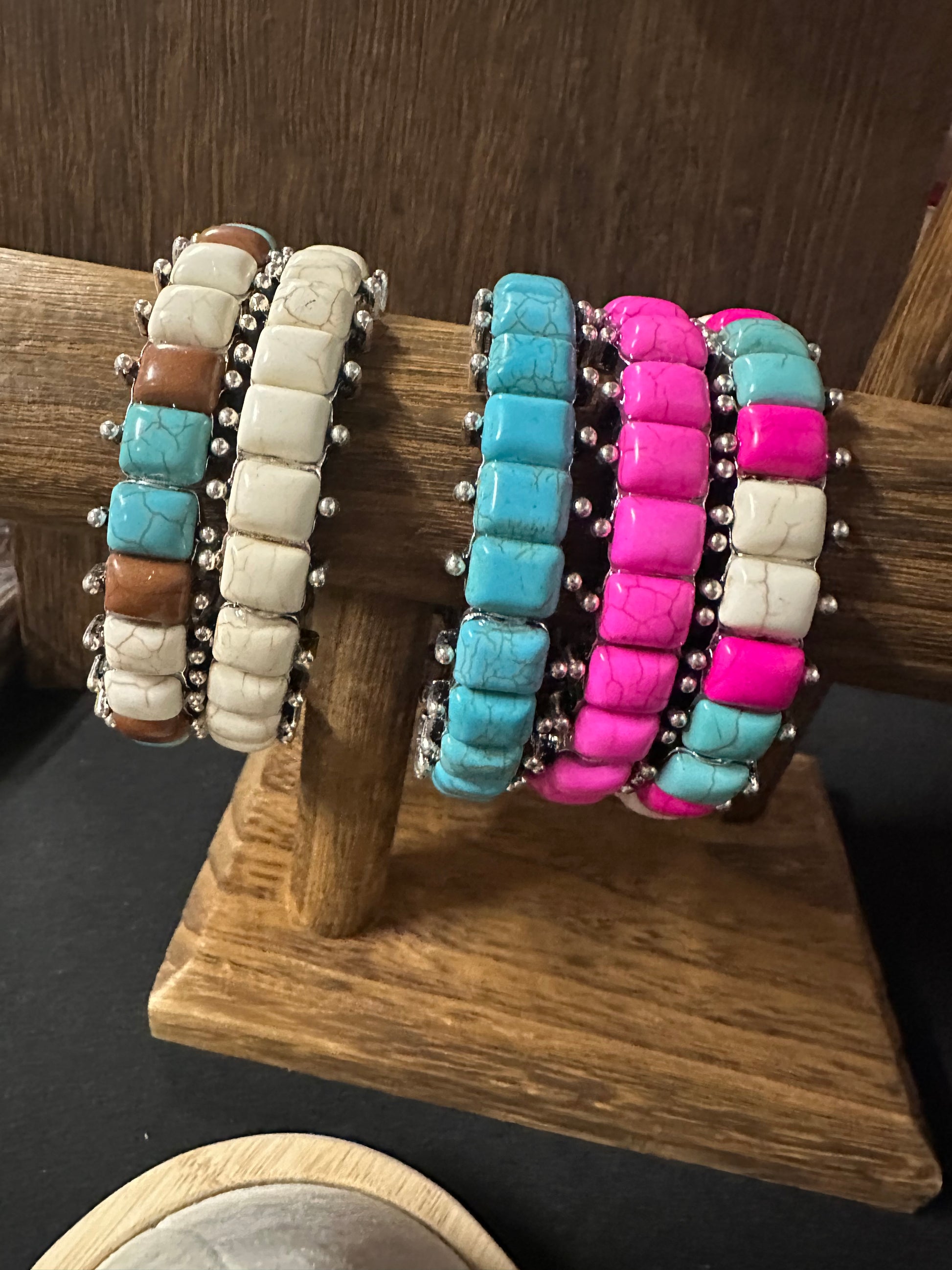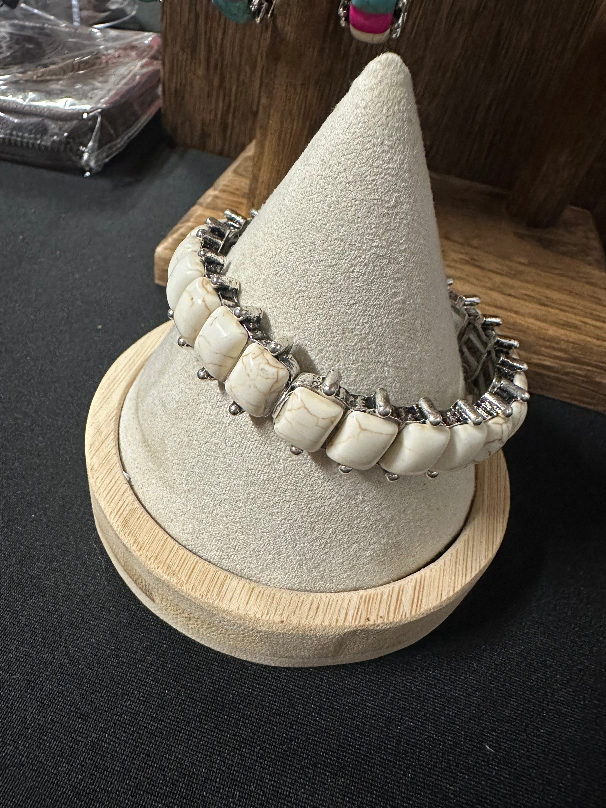 Expertly designed with a rustic burnished silver finish and intricate colored accents, this Western Ball TXR Square Stone Stretch Bracelet adds a touch of elegance to any outfit. Crafted with high-quality materials, this stretch bracelet is not only visually appealing, but also durable and long-lasting. Elevate your style and make a statement with this unique piece.
