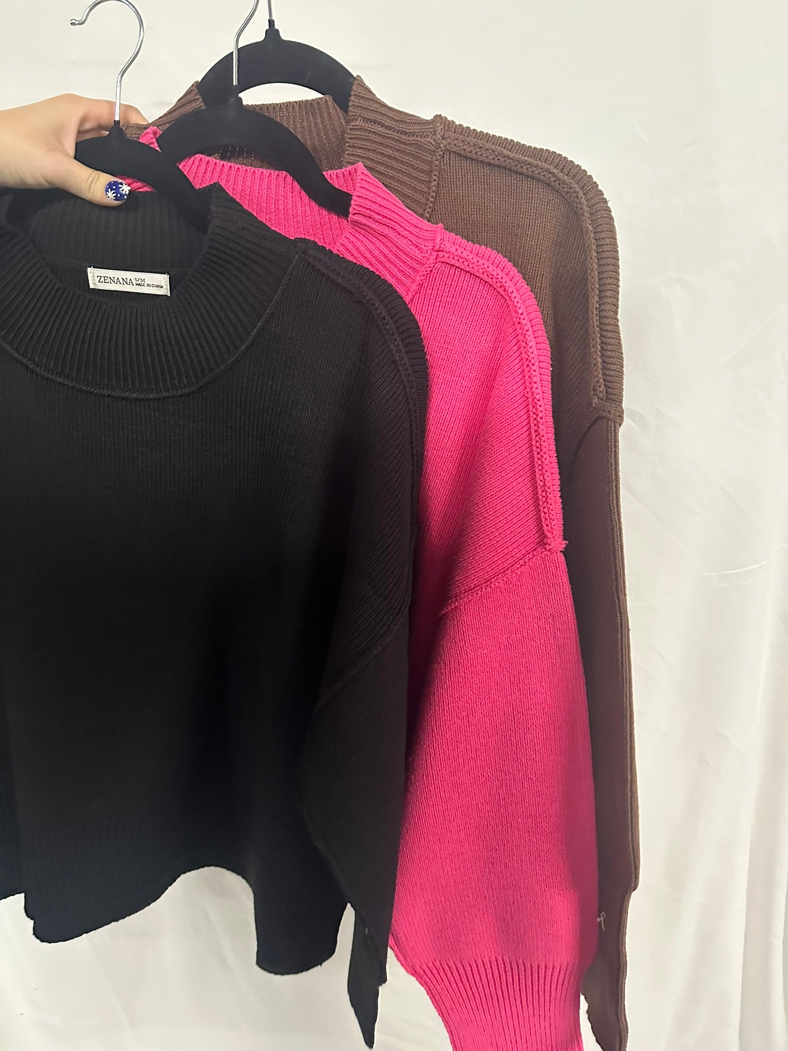 WIDE NECK BAND DROP SHOULDER SWEATER