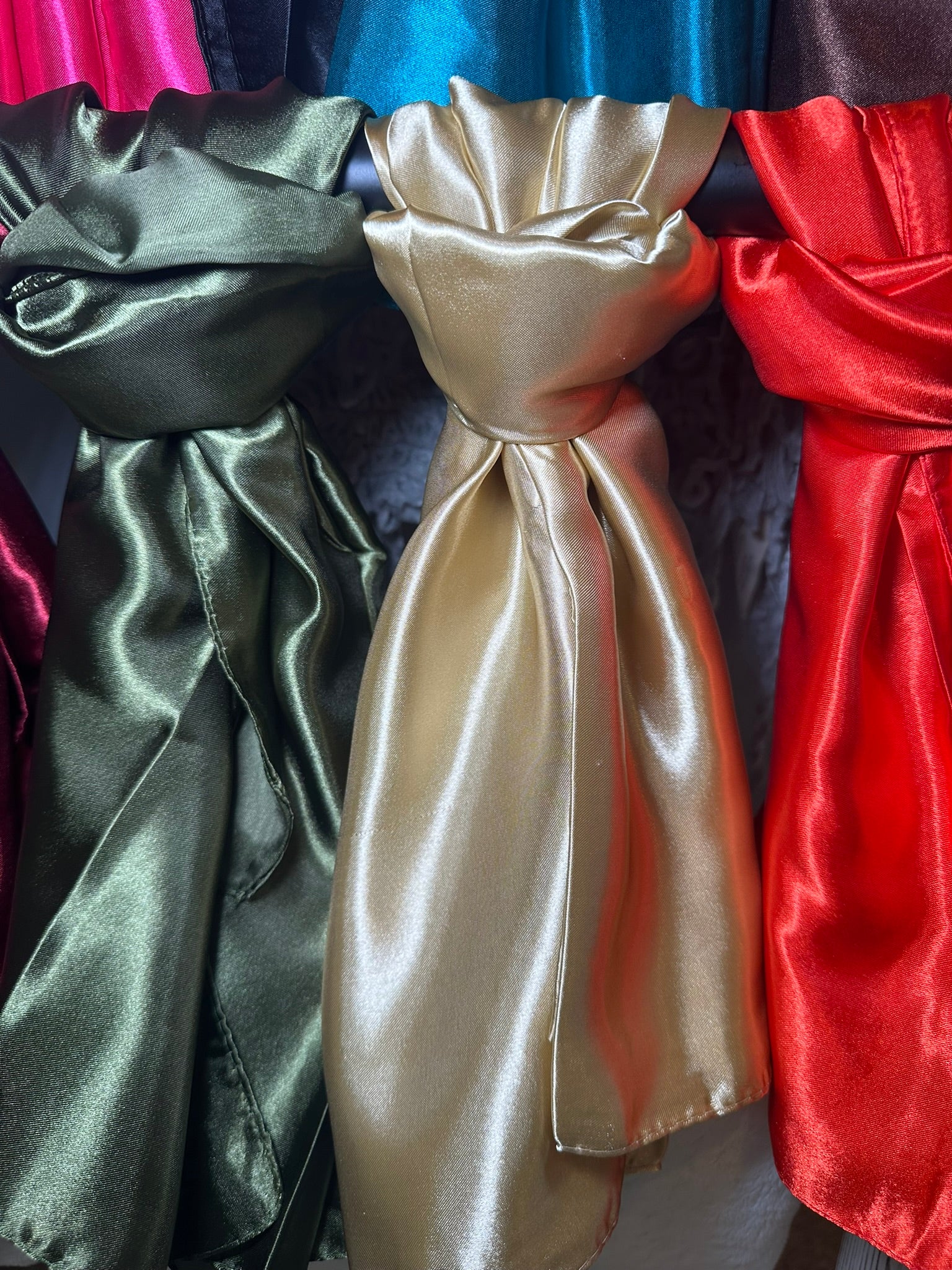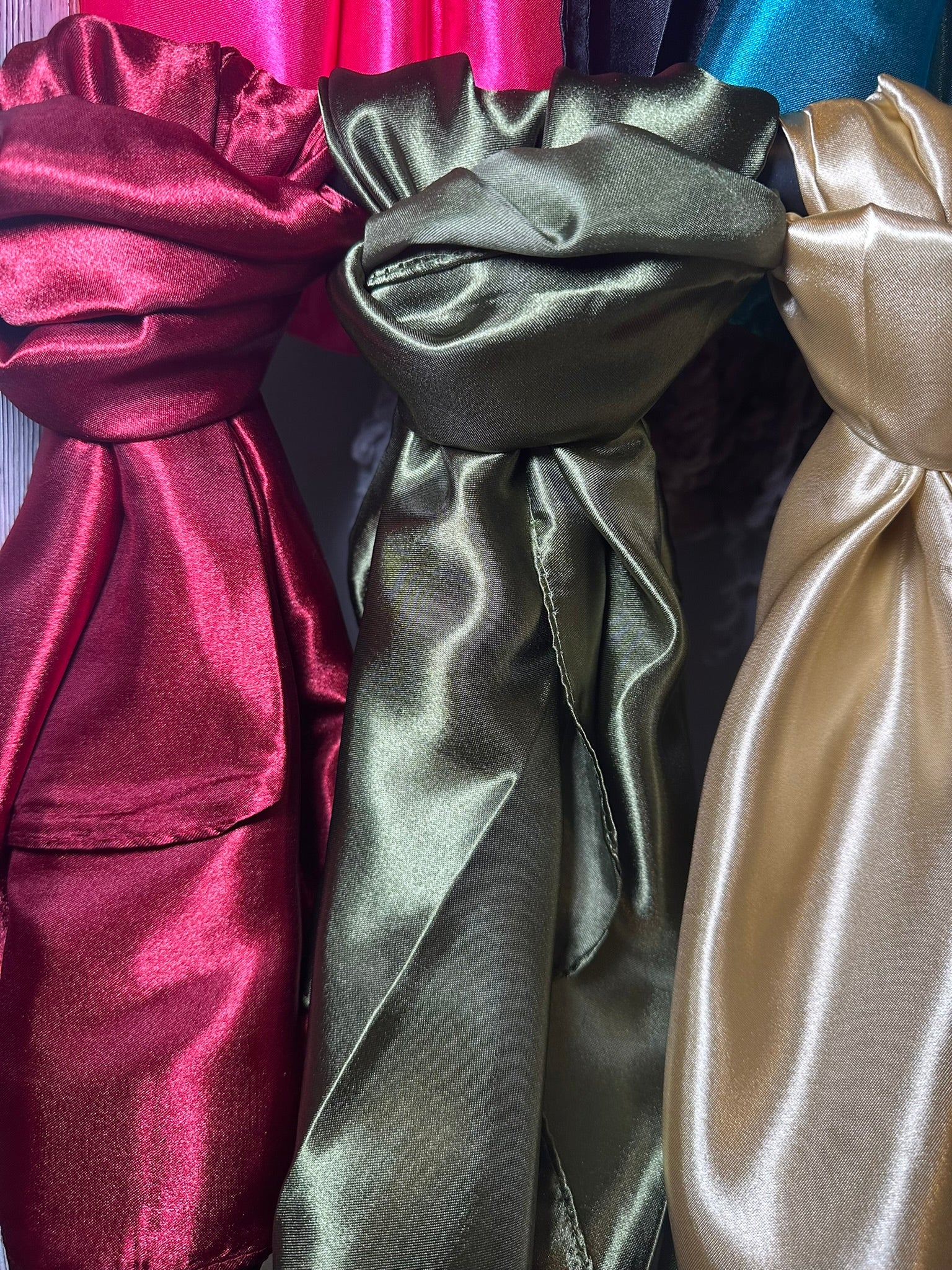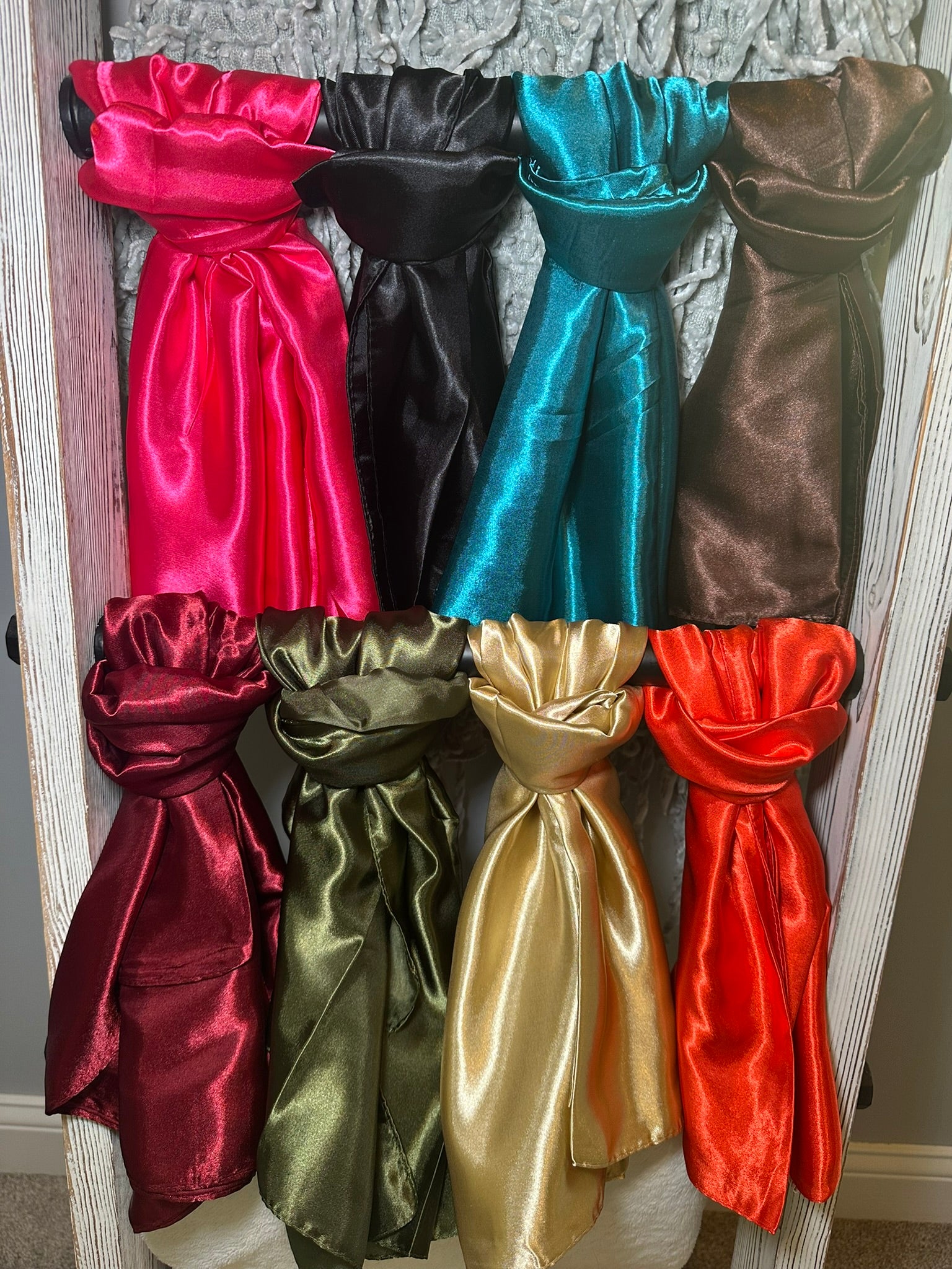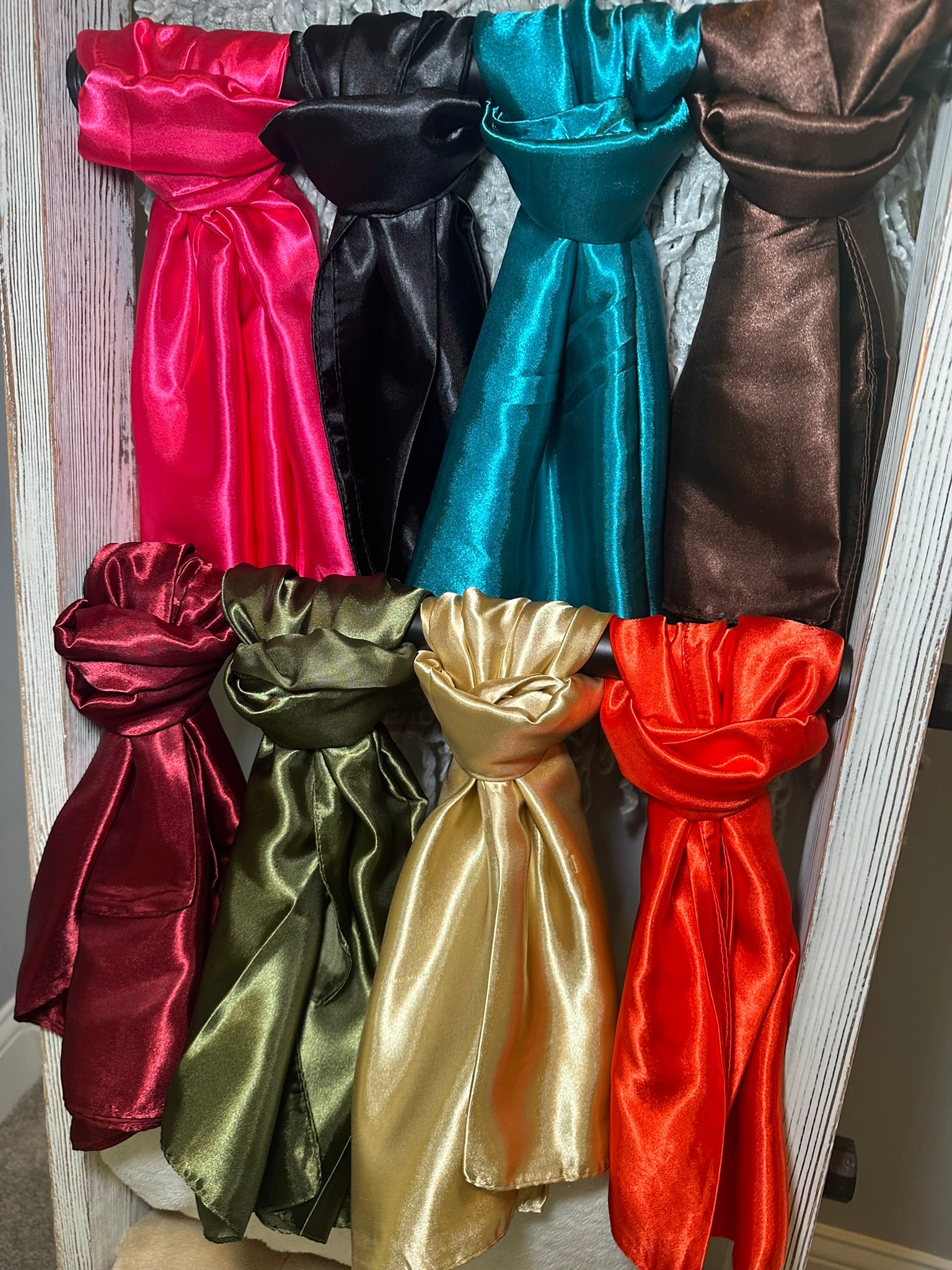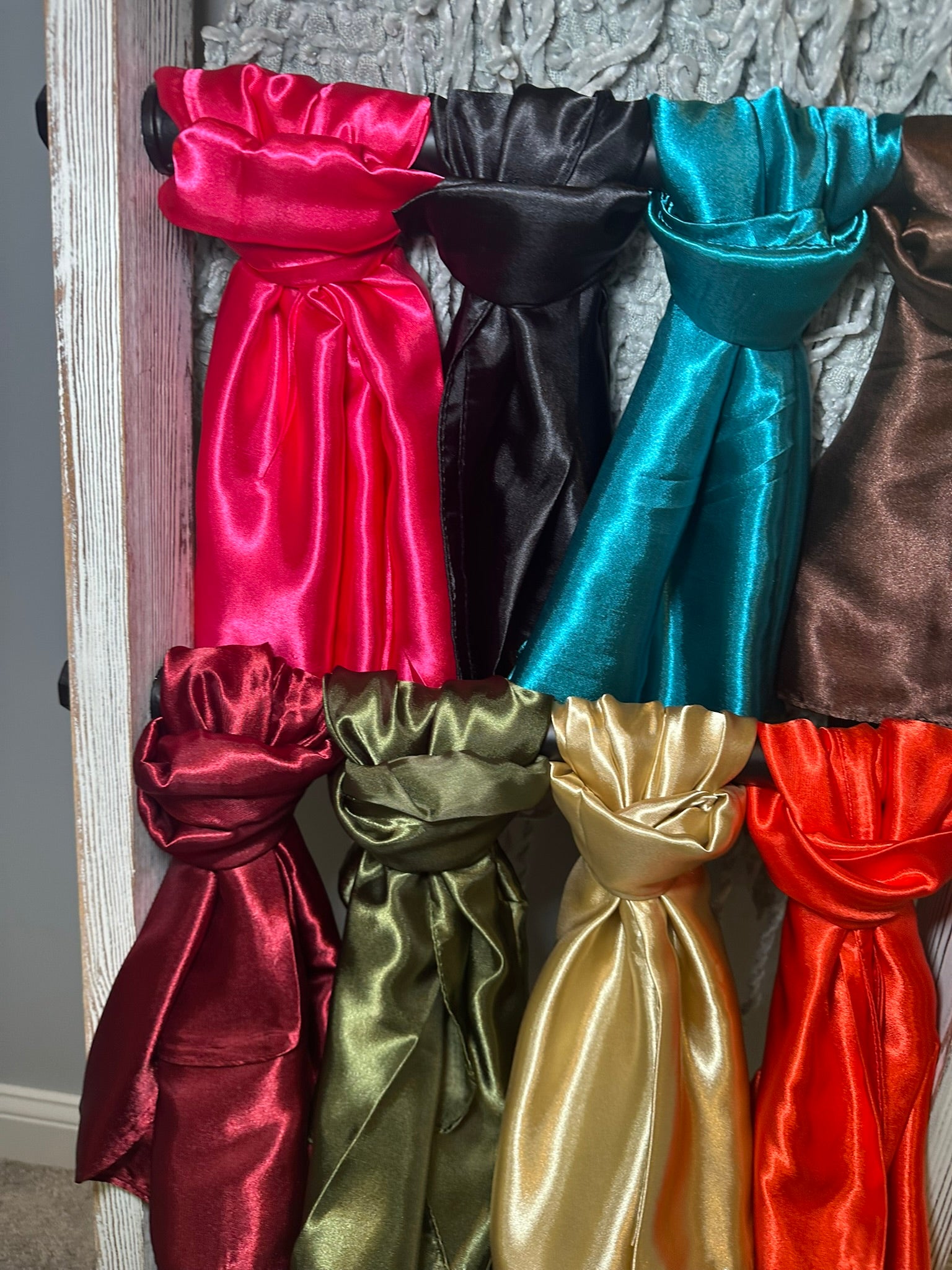 The Wynonna Wild Rags are an excellent accessory for any wardrobe. They come in a variety of 13 solid color options and feature a soft, silky-like fabric, making them perfect for wearing as a head scarf or even top!